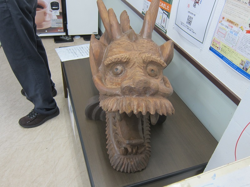 お盆で岩泉町に行った戻りは宮古経由でした。魚菜市場で買い物は出来ましたが楽しみ期待の食堂が空いておらず、宮古駅前の立喰い蕎麦と相成りましたが、これはこれでなかなか良くて美味しかったです。宮古駅には、我が家近くの上野工務店の親父さんが龍の木彫りを寄贈されていました。