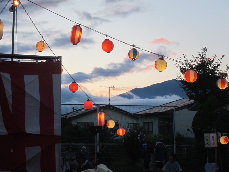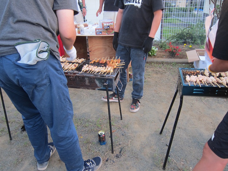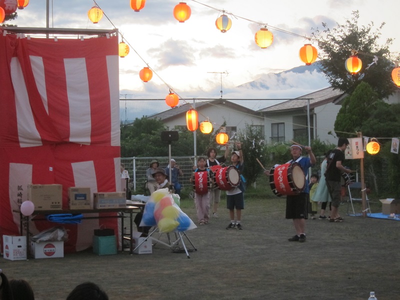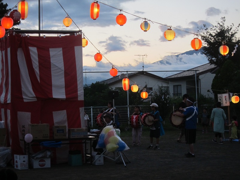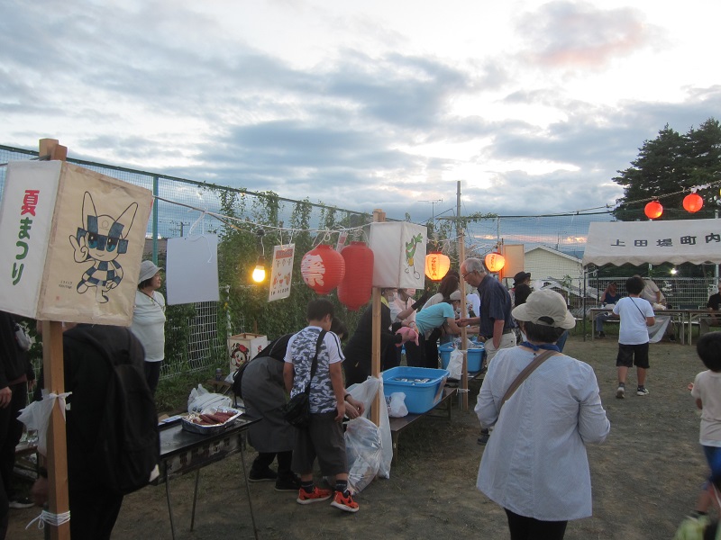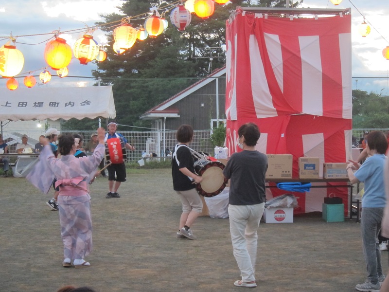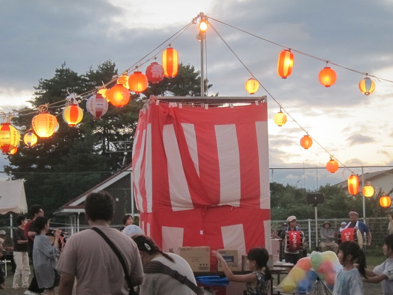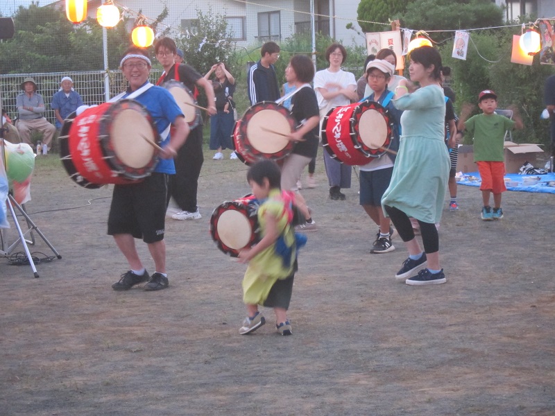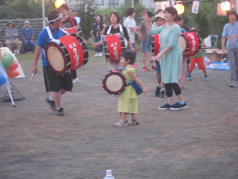 近所の上田堤児童公園では毎年夏祭りが行われます。さんさ踊りの輪踊りが始まると、子供たちも大勢繰り出して、こんなに地域に子供がいたのかと驚きと嬉しさで楽しくなりました。しかも焼き鳥1本50円これも良いですね・・・( ´艸`)