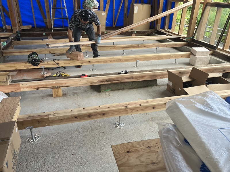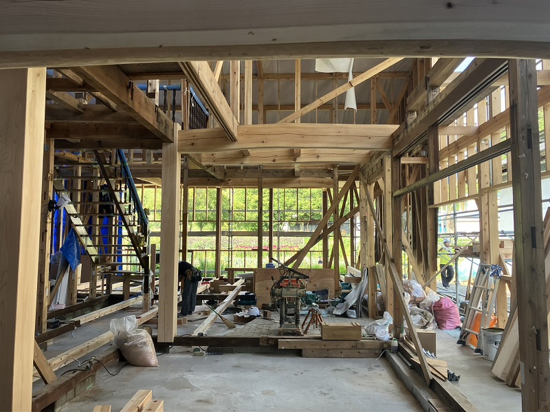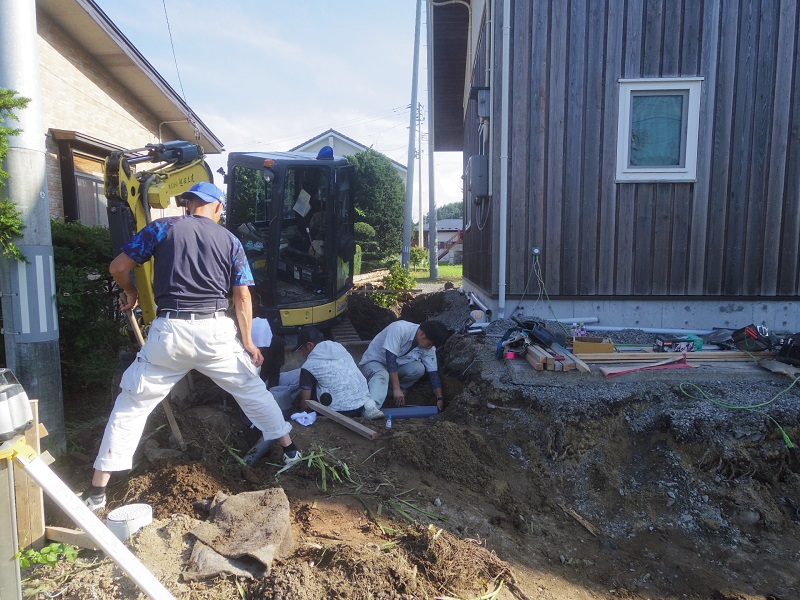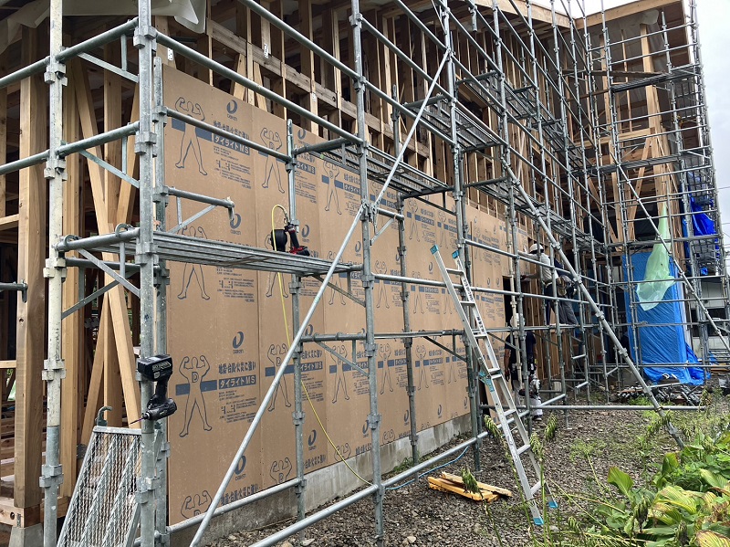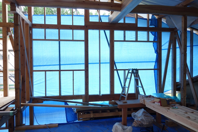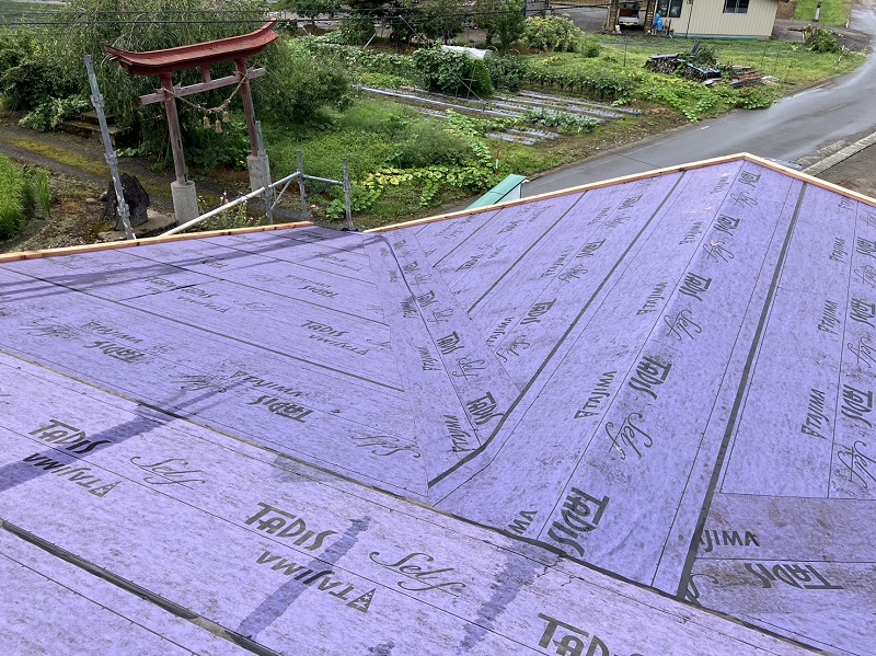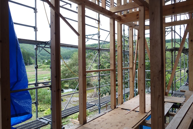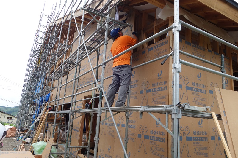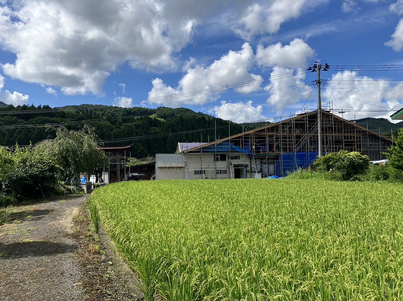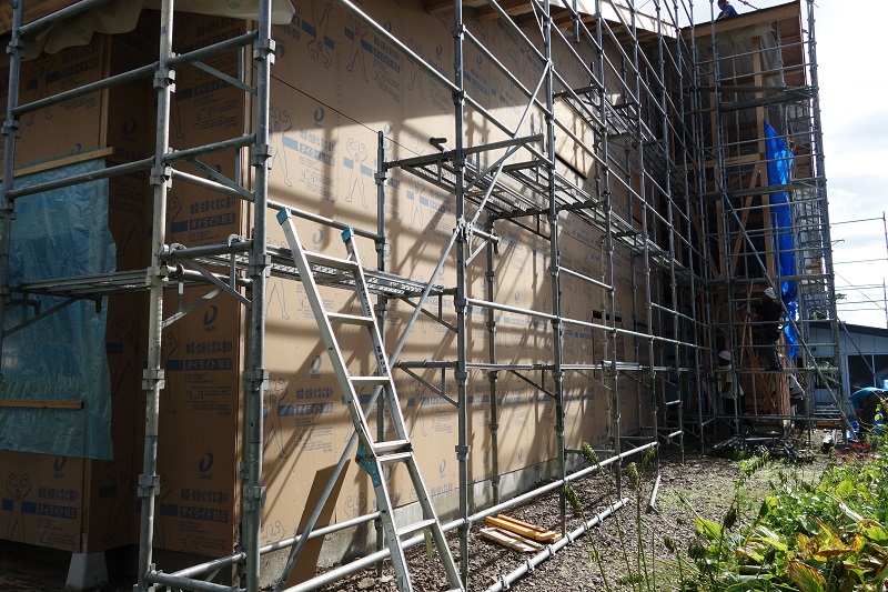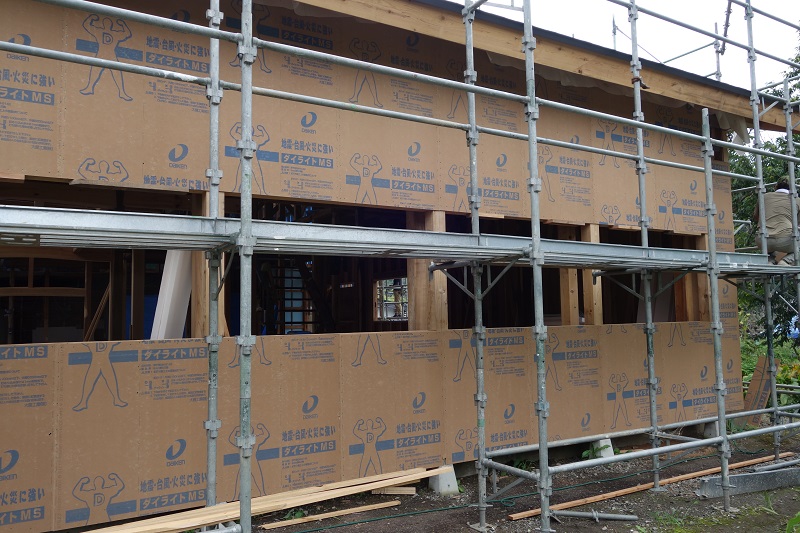 田山の大改修現場では、台風情報が迫りくる中八幡平市の方では比較的雨が降らずにいるので、何とか屋根を進め、外皮側構造面材の張込みも進み出しました。床下の土間断熱も出来て、温水暖房配管も進んだようです。鳥居の基礎も無事打設したので、基礎メンバーもそのまま現場足場に上がって大工さんの手元応援予定です。どうにか台風が北上して来る前に囲い込み出来ればと願い祈る日々です。