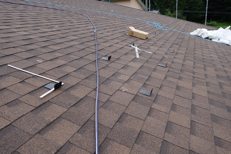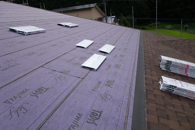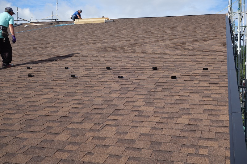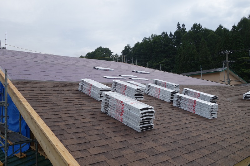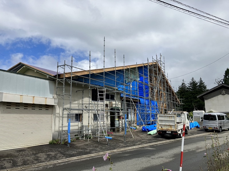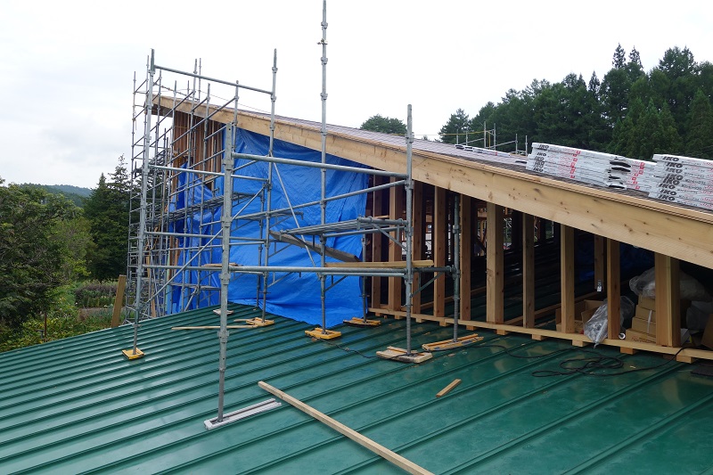 台風情報と追いかけっこするみたいに、屋根工事が急ピッチで進められています。大屋根なので、既存屋根上にも足場を組んでの大工事です。迷走台風が反れて来ることを願うばかりです。