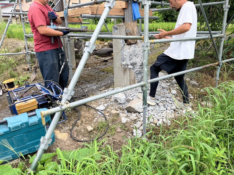 田山の大改修現場向の鳥居の修繕に取り組んでおります。基礎のヒューム管がとても硬くて難儀しながら解体しています。木部は完全に腐食していたので、このまま放置しておくと倒れたと思いますので、手を掛ける時期であったのは間違いないですね。住宅の改修は現場便りにてご覧いただければ幸いです。