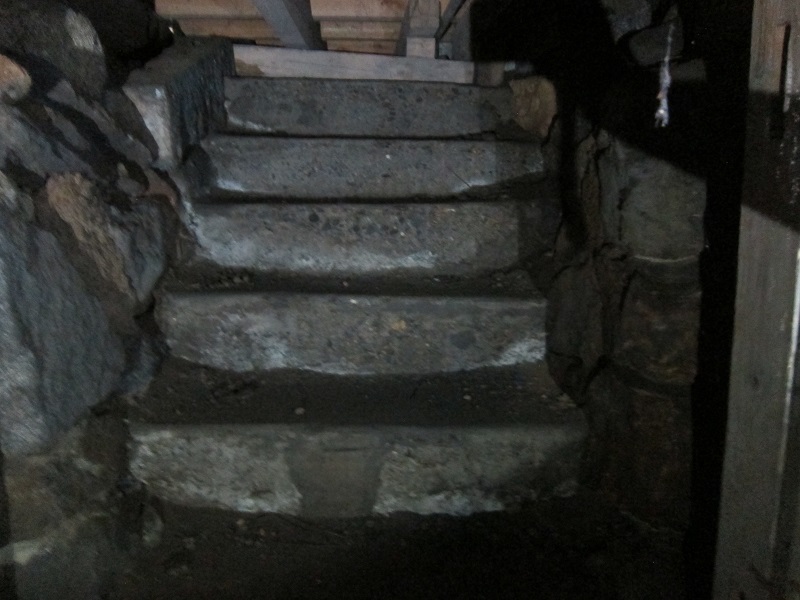 盛岡市鉈屋町の旧和田酒店を大改修の為に事前調査をさせて頂きました。床下に石垣が残っている歴史を感じさせる雰囲気です。写真の階段を上がった所が明治期か大正時代の元銀行の店舗だったようです。