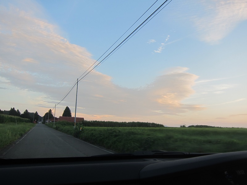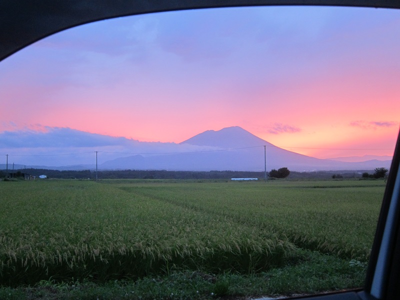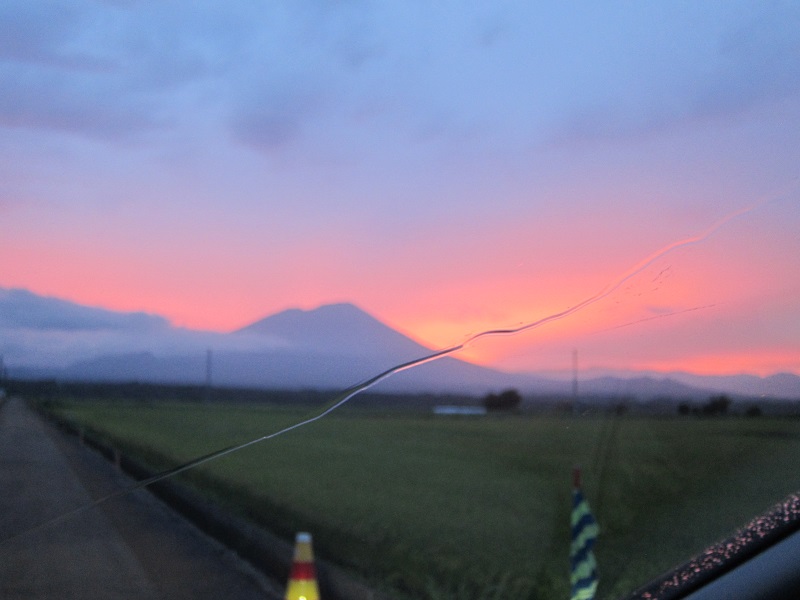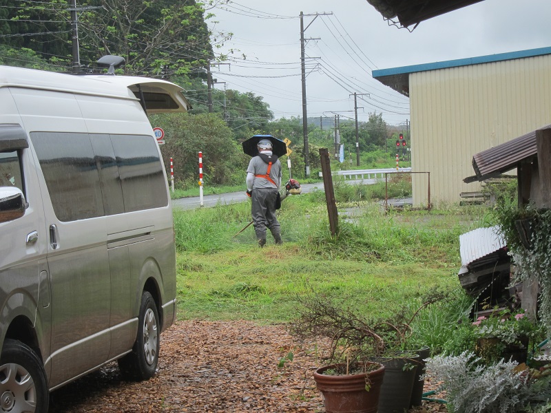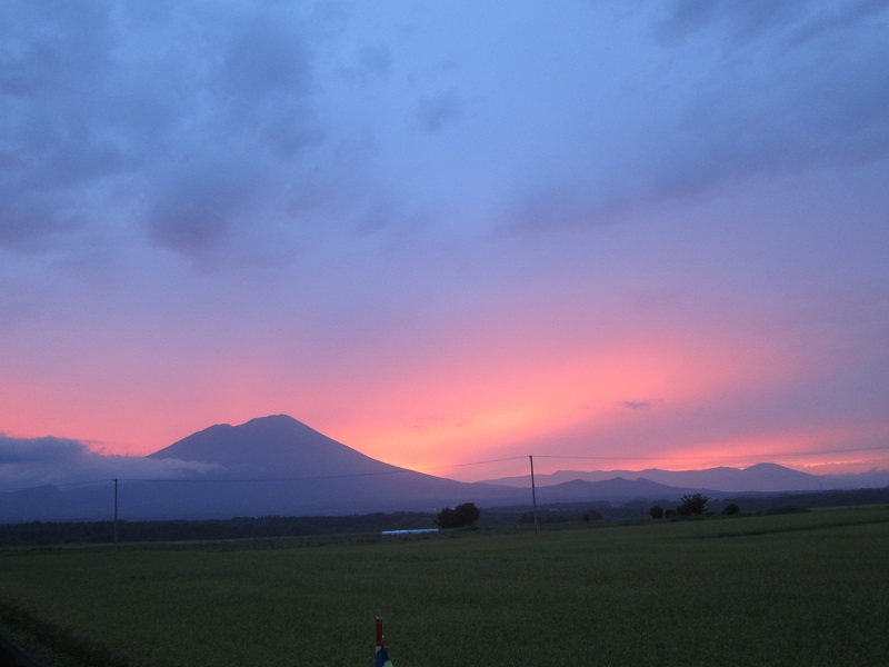 昨日の帰り道、何気なく通り過ぎようとした時岩手山方向が赤くて急に止まって写しました。今朝は雨の空です。そして、草刈りは晴れの日と雨の日での比較写真です。頭のヘルメット笠をご覧くださいませ。