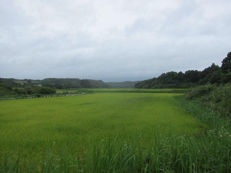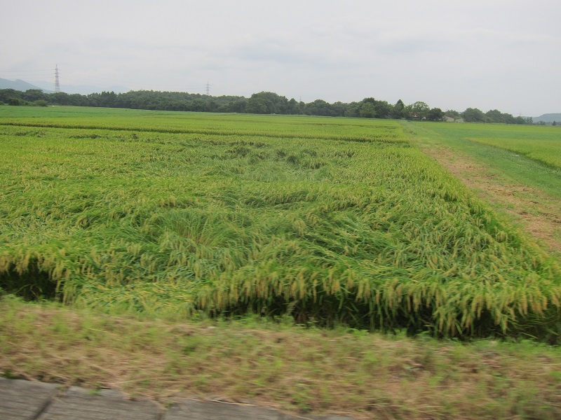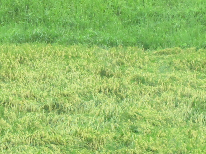 先日の大雨土砂降りの影響だと思われますが、稲が倒れ乱れているのが散見される風景が点在しています。寂しい風景ですね。