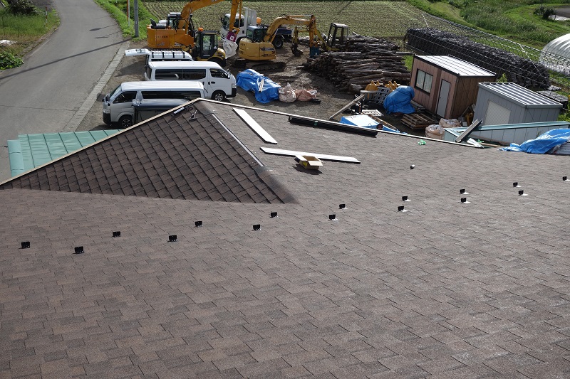 このところ毎日掲載している田山の大改修現場の進捗です。外囲いの外皮構造面材は大方です。屋根も最終仕上げが出来て来た感じです。当初の予測がずれて、台風はまだ南で停滞していますが、雨風の影響は来ています。明日は日曜日休みなので今日一日頑張れば何とかやり過ごせるまでにはなる見込みが出来ました。なんせ100坪なので、とても大きいです。こうして自分の現場の事を祈って来ましたが、他の地域方々の被害も無きことをと祈り続ける毎日です。
