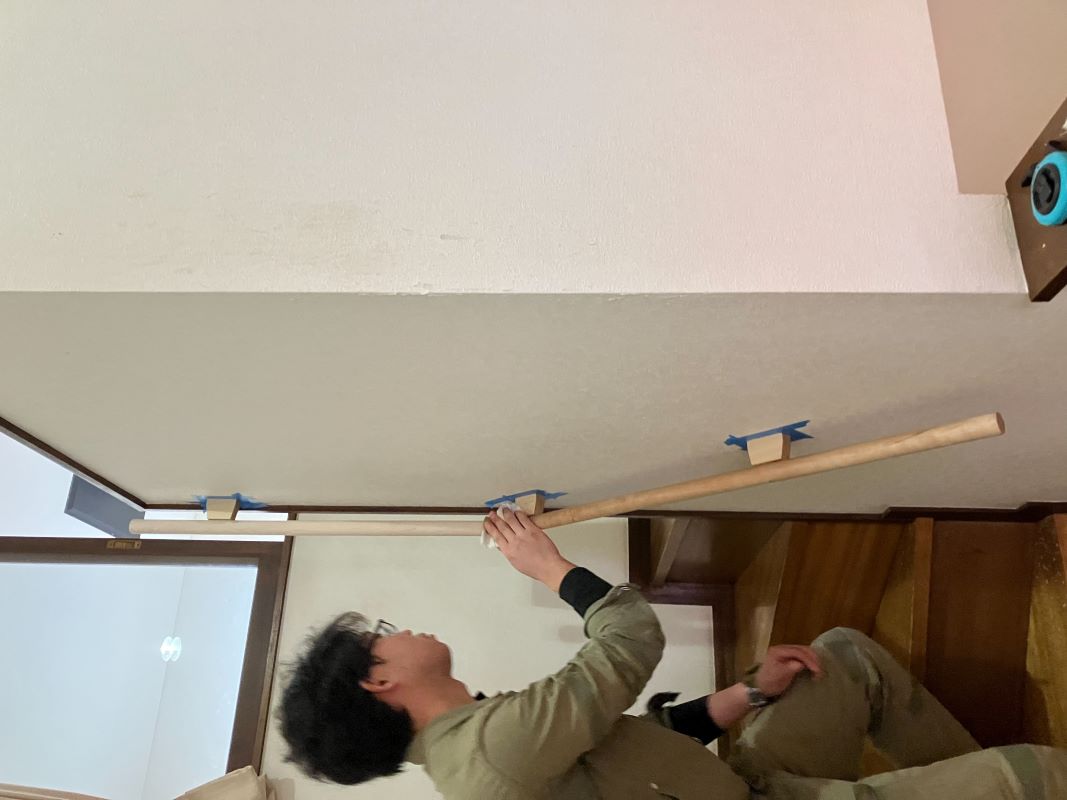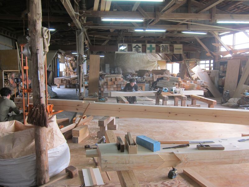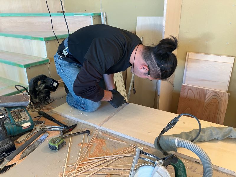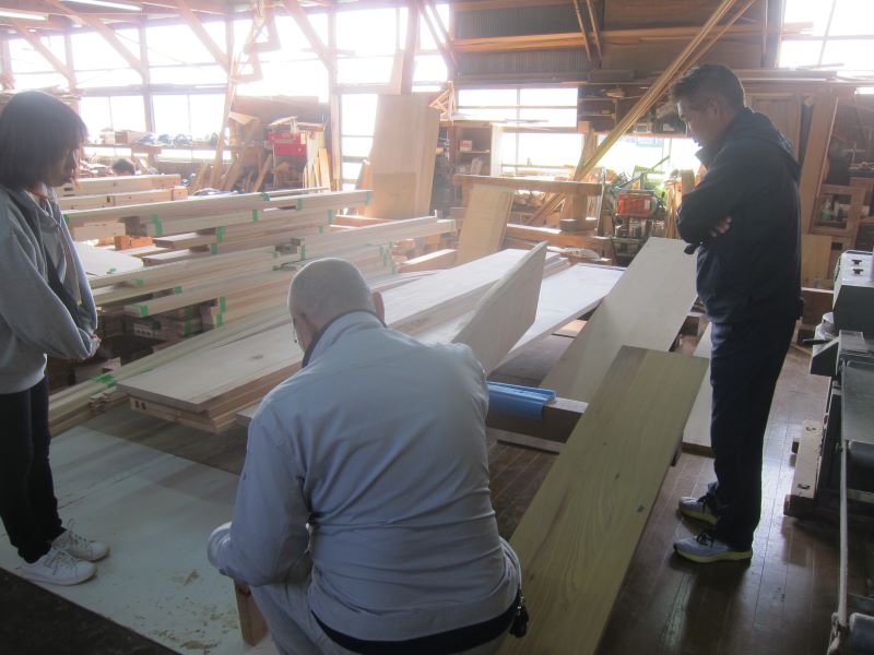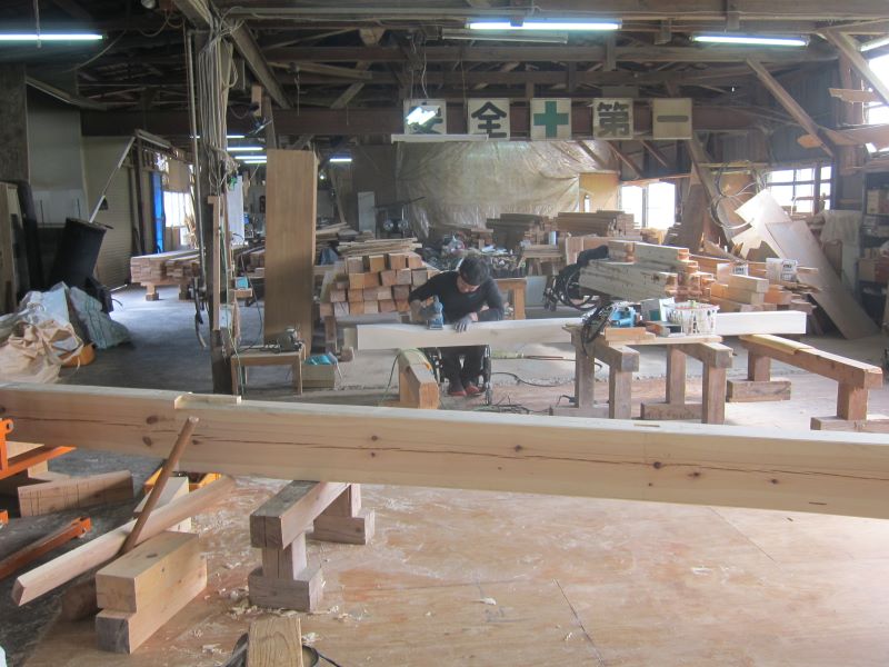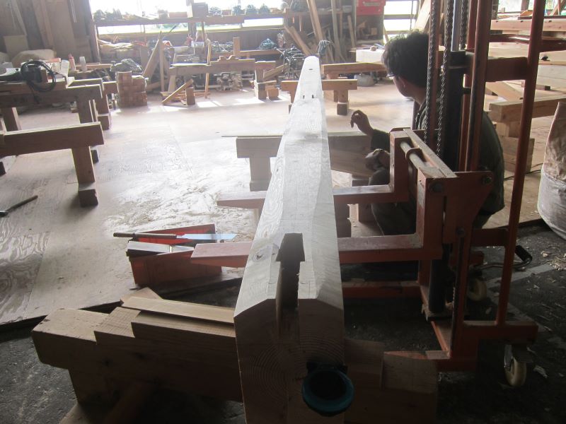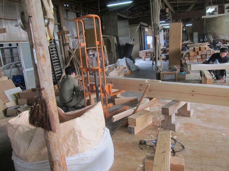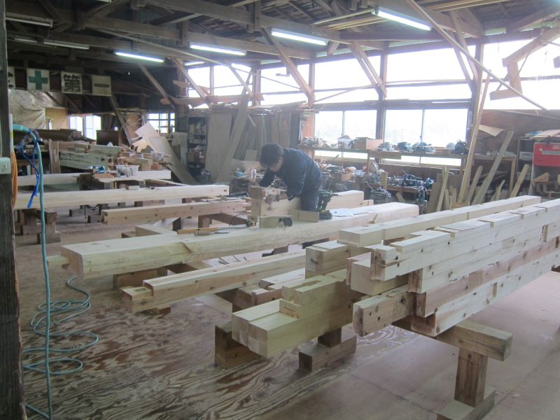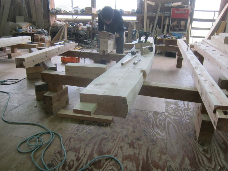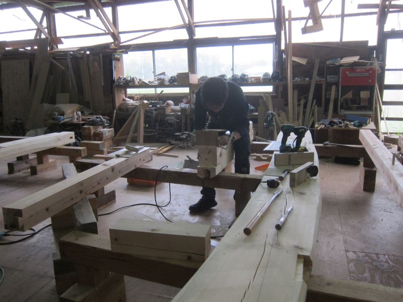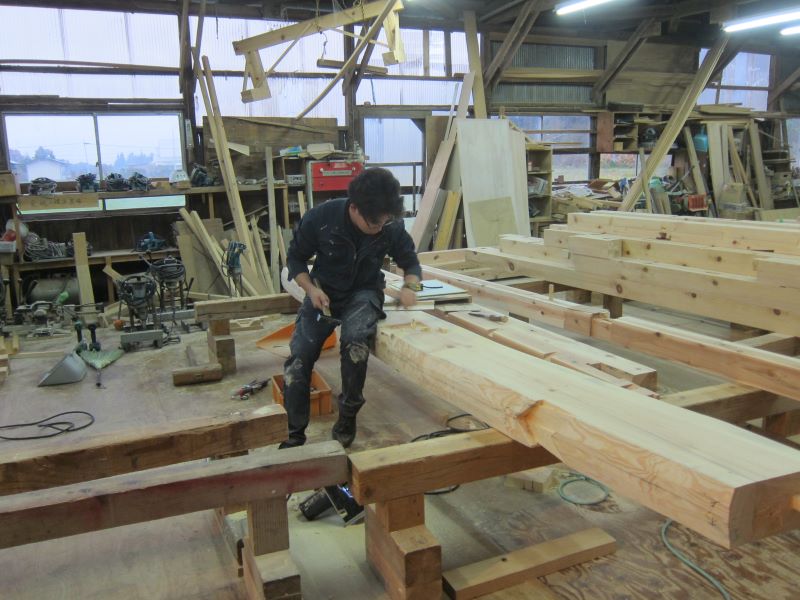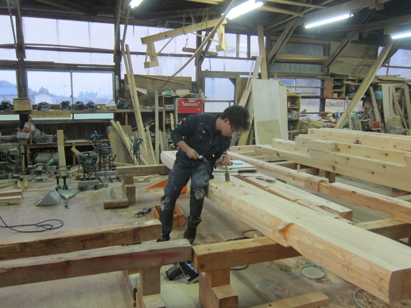 昨年入社の20代若手大工が手刻みの日々です。光りつけも学びながら取り組んでいました。