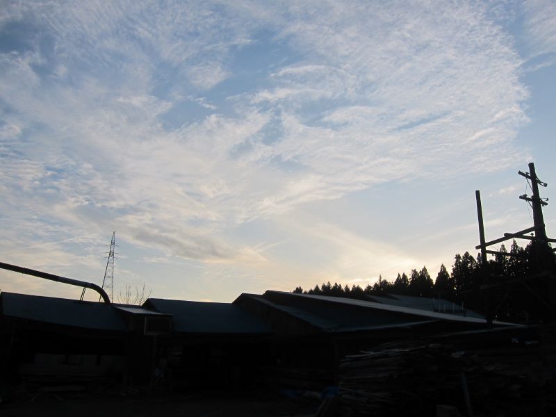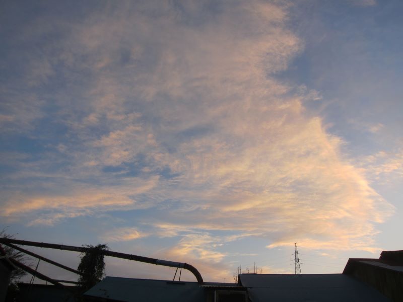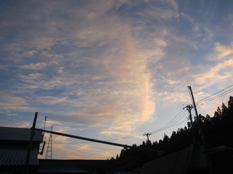 夕暮れ前の夕刻見上げる秋空は、筋雲が茜色に染まりかけていました。今年は辰年もう11月です。竜雲がよく見れた気がします。