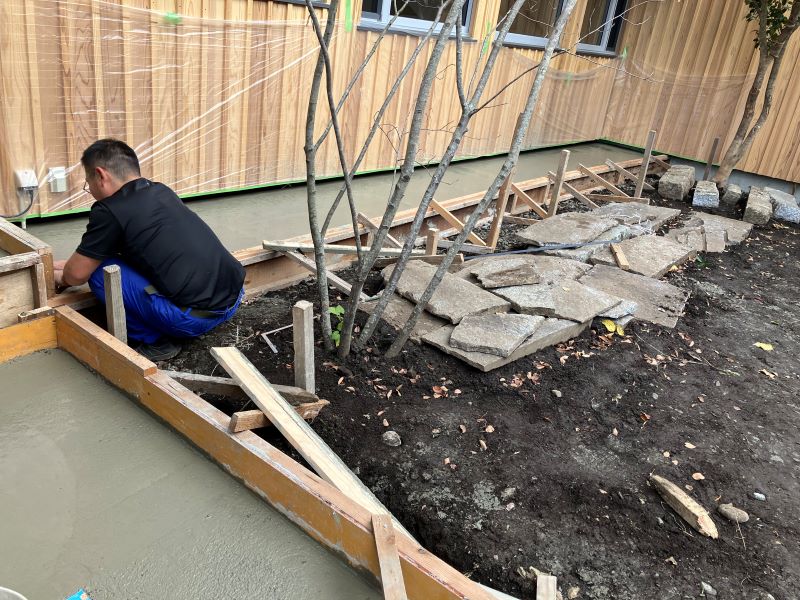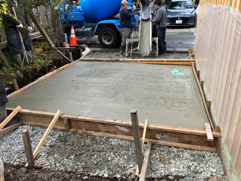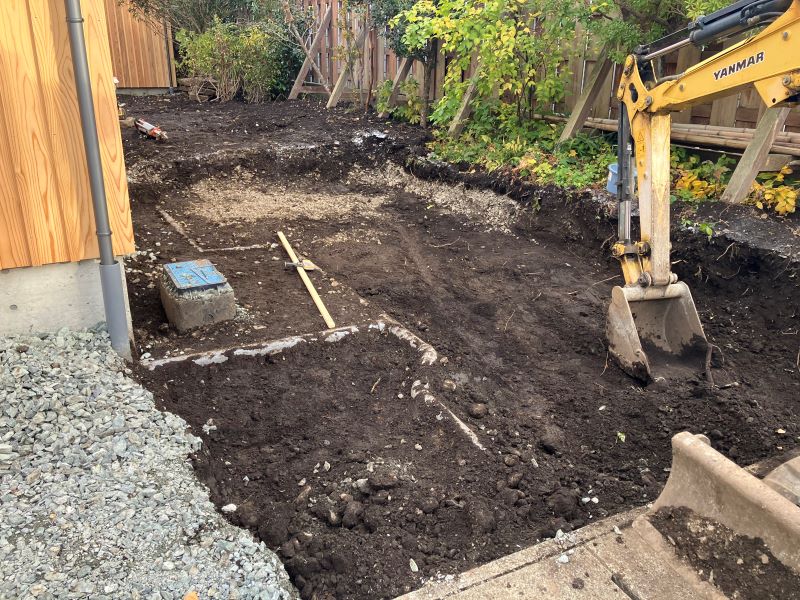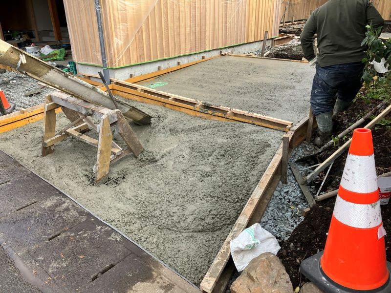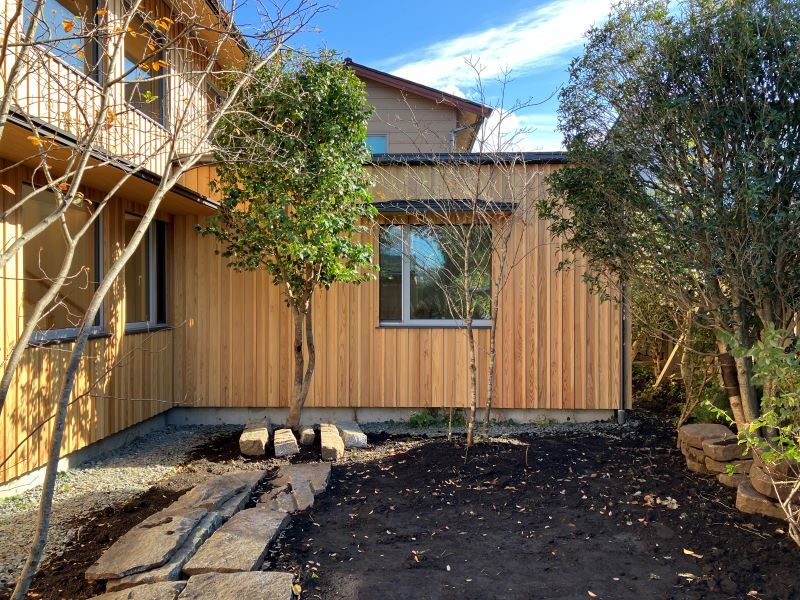 完成見学会も有難く無事開催させていただいた西青山の新築住宅では、庭の植栽の植え込みと舗装路のファイ工工事が行われました。庭が出来てくるのがとても楽しみです。外構工事も当社自社施工です。完成時にはまた掲載させていただきたいと思います。
