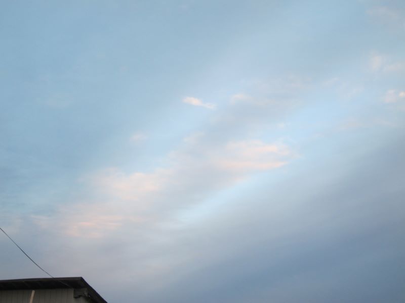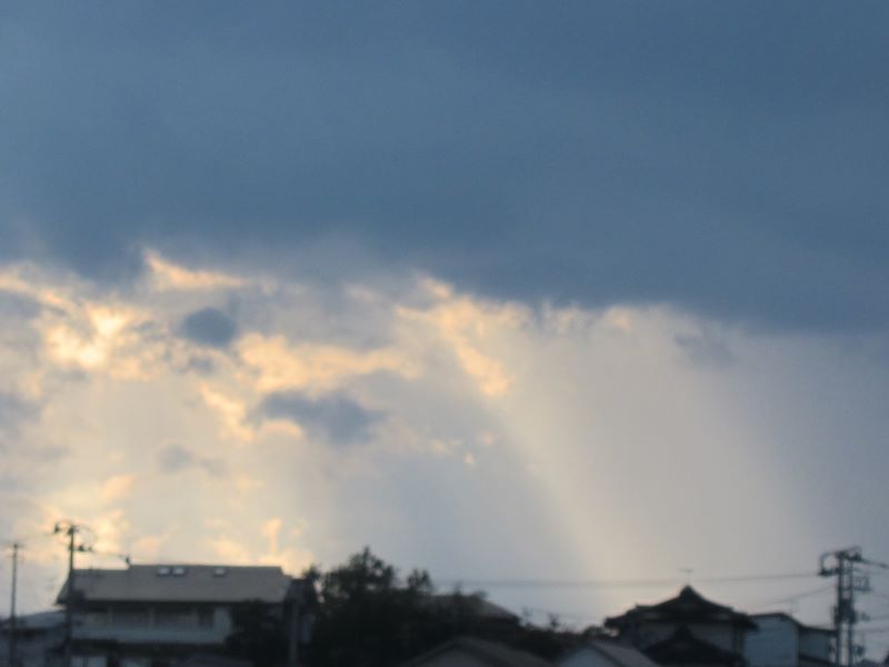 夕刻見上げた西方向に見えたのがレーザービームのように放射される太陽光粒子の光筋でした。輪を描くようにも見えたそれは天空のパイプオルガンでした。