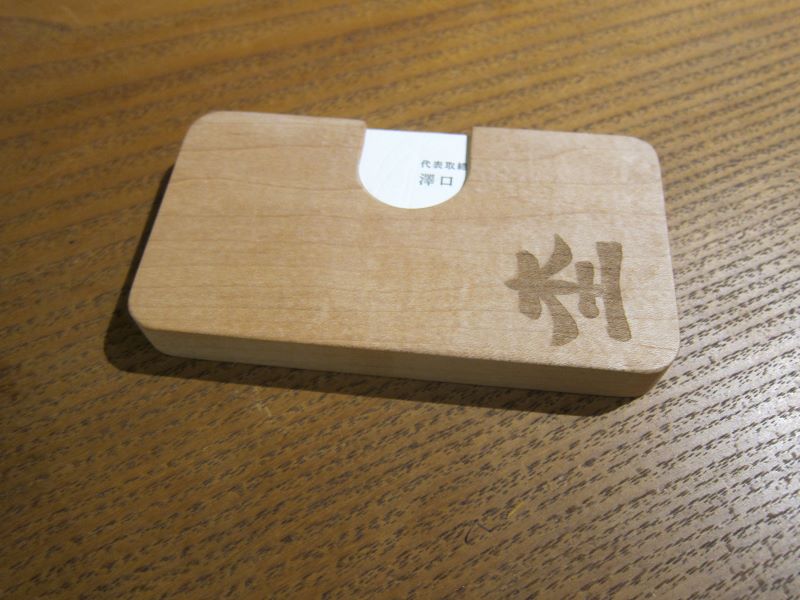 イタヤ楓の木のカウンターを作成中に出た、切り落とし材の杢目が素敵なのでと、貴重なので捨てるのはもったいないので、当社の家具職人がイタヤの木の板材をそのままくり抜いて名刺ケースを作ってくれました。たまたま工事中にご自宅のテレビカウンターを見に来ていただいたお客様にもこれと同様の名刺入れを作らせていただくことになりました。レーザープリンターでお客様の会社のイラストも刻印させていただく完全オーダーです。この日記をみて、同じものを作りたい方がいらっしゃいましたら、是非お問い合わせください。お待ちしております。