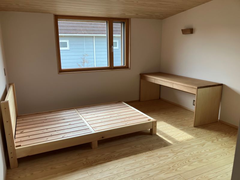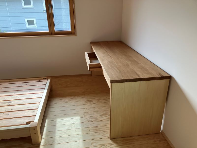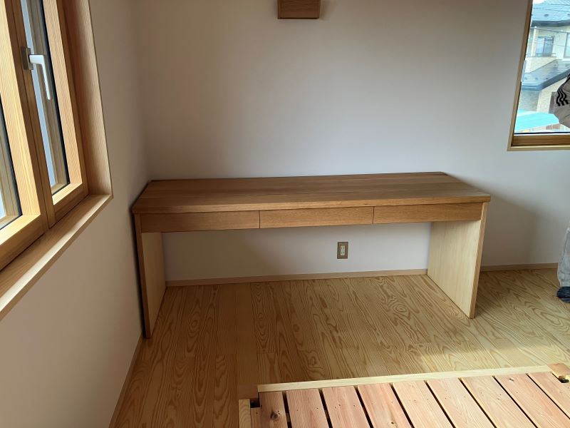 先日お引き渡しさせていただいた西青山の新築住宅に追加でご依頼ただいた机やベッドに再生修繕したテーブルなど納めさせていただきました。