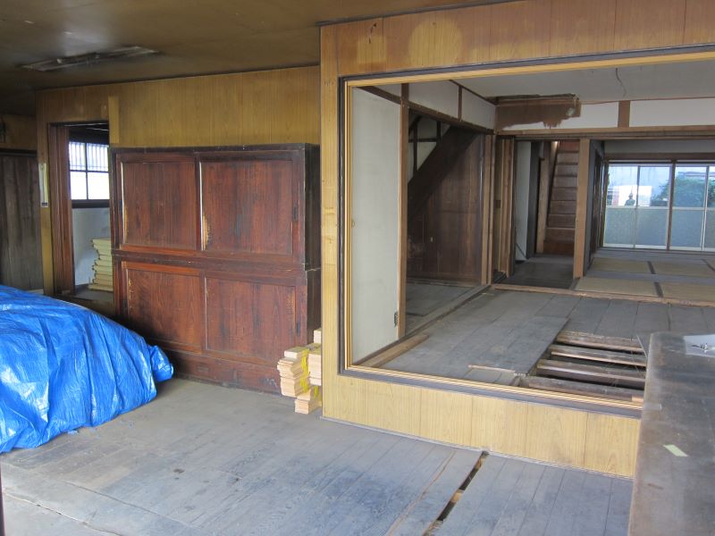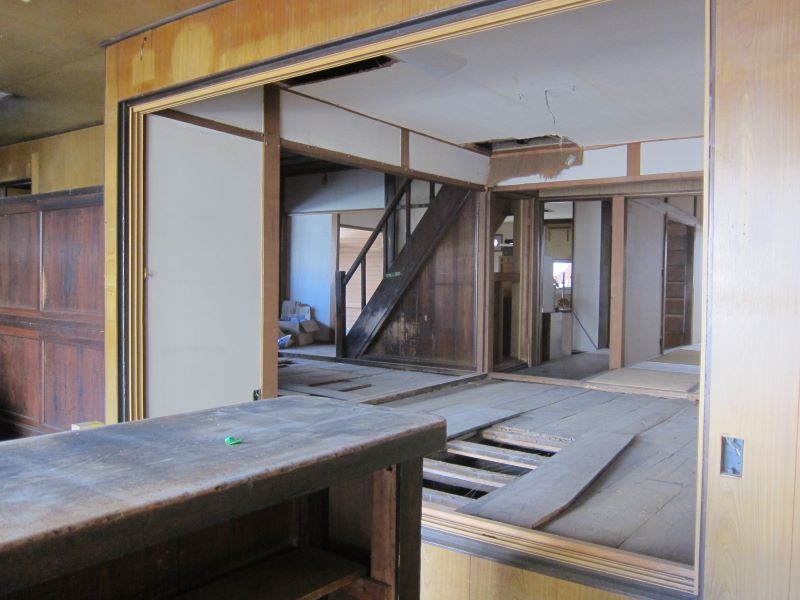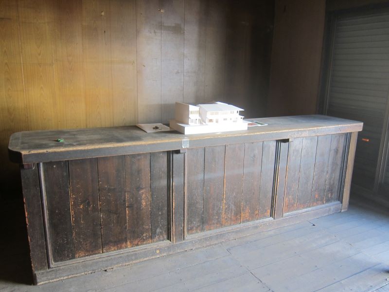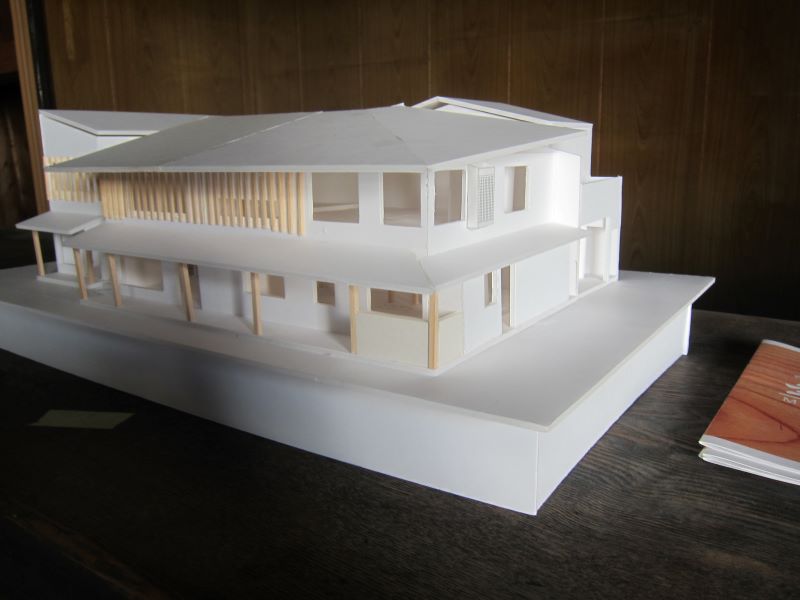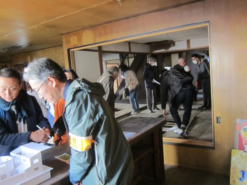 先週土曜日、鉈屋町の街並み塾様のイベントで、鉈屋町の空き家を見学するイベントが行われて、改修工事に着手する予定の旧和田酒店もご見学いただくことになりました。そこで、内部の片付け中でしたが大物をよけて約150年前の木のカウンターを綺麗にしてそこに改修予定の仕上がりイメージの模型を置いて見てもらい、昔の船着場石組みの地下室も皆さんに見ていただきました。