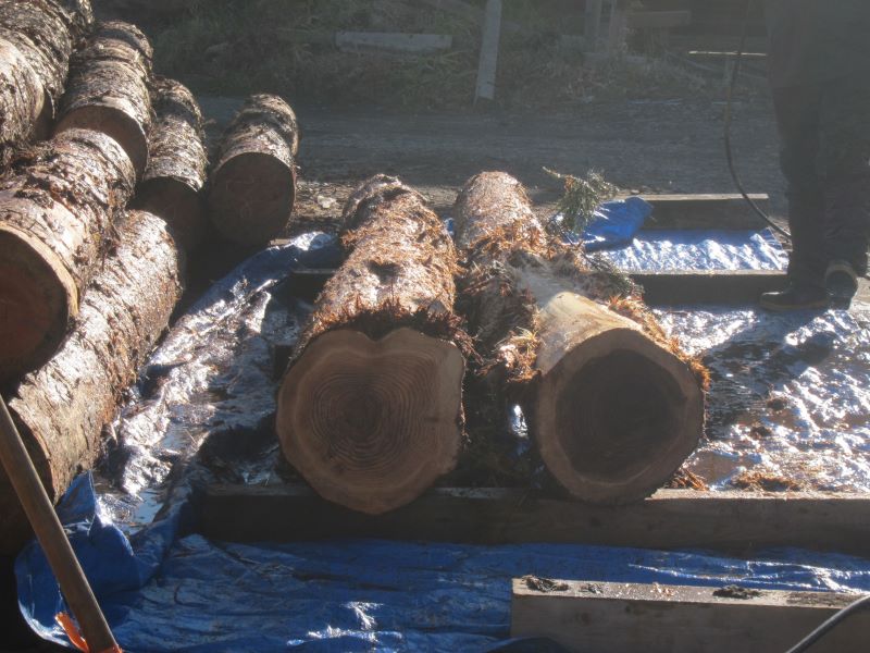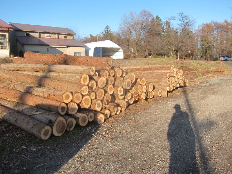 岩手県立大学近場の山林から南部赤松樹齢100年の見事な丸太を購入いたしました。曲がりが無くみんな真っすぐなので、今回は太鼓梁等よりも在庫に手薄感がある階段板に製材して自然乾燥取置きの雰囲気になりそうです。