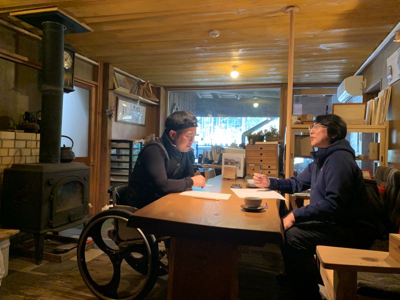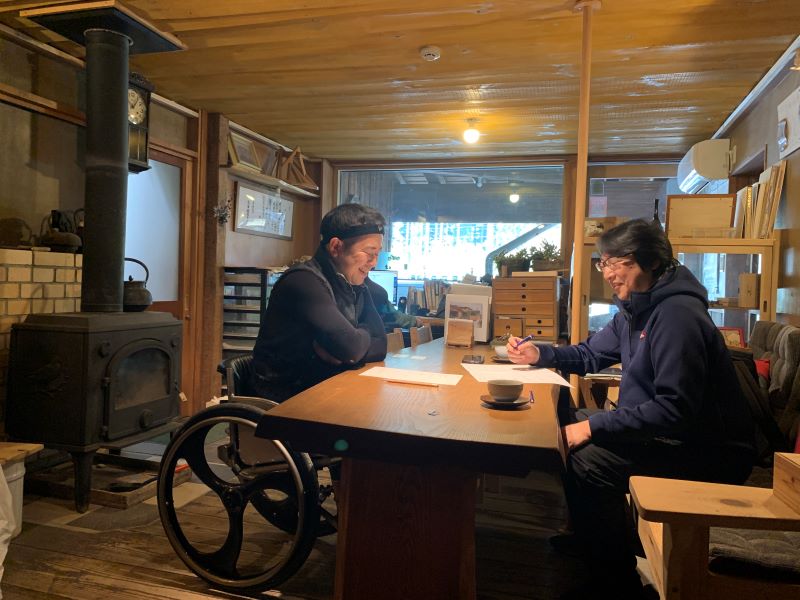 先日、弊社ホームページに社員紹介コーナー開設のための社員インタビューが行われました。第一回目は車椅子大工でしたので、その時の懇談風景写真をご紹介いたします。
