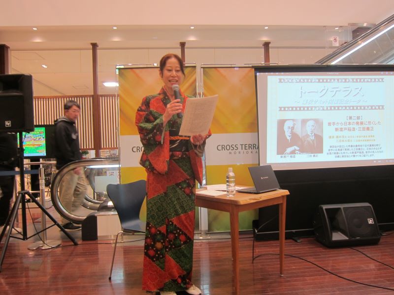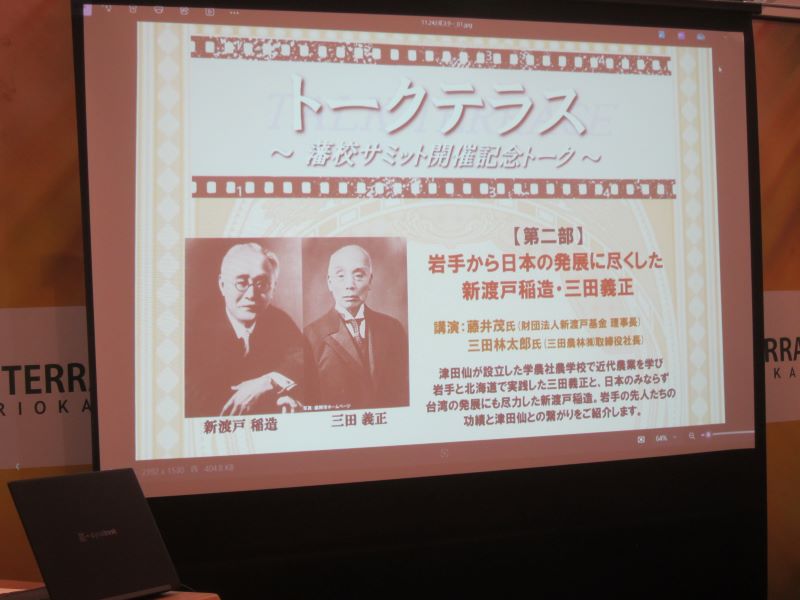 日曜日、盛岡大学の丸山ちはや先生に以前からお誘いをいただいていたので、クロステラスでのトークテラスを聴講参加してきました。これには前日の藩校全国サミットで来盛された徳川のお殿様の末裔の方も同席されおられまして、オーラを感じました。トークは津田仙師のひ孫様と新渡戸稲造基金理事長様に三田農林(株)社長で三田義正さまのひ孫様のお三方です。司会進行桜川ちはや先生で、幕末の日本で学びの場を立ち上げ明治の国造り人材育成にご尽力された先人のみなさまの精神を学ばせていただきました。富国強農の必要性が100年以上前から言われていた事を鑑みて現代にも通用する話だと感じました。