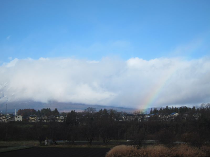今朝は雨模様だったので、虹も出ていました。地球は新幹線よりも早い速度で自転しているのに、太陽光線で出る虹が同じ場所に見えるのもすごい惑星規模の大スケールですね。