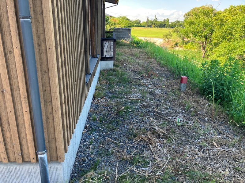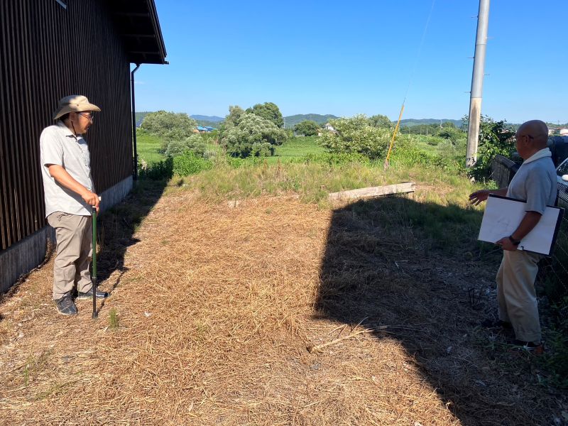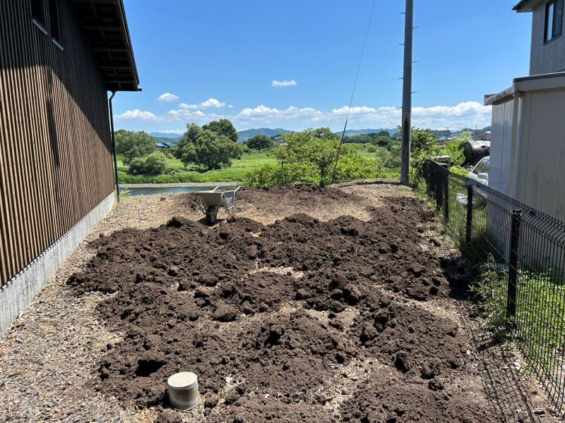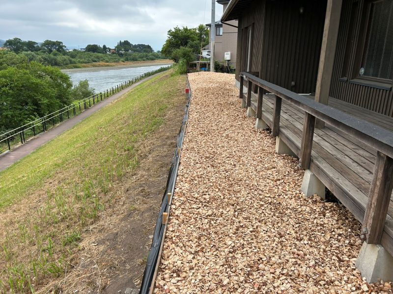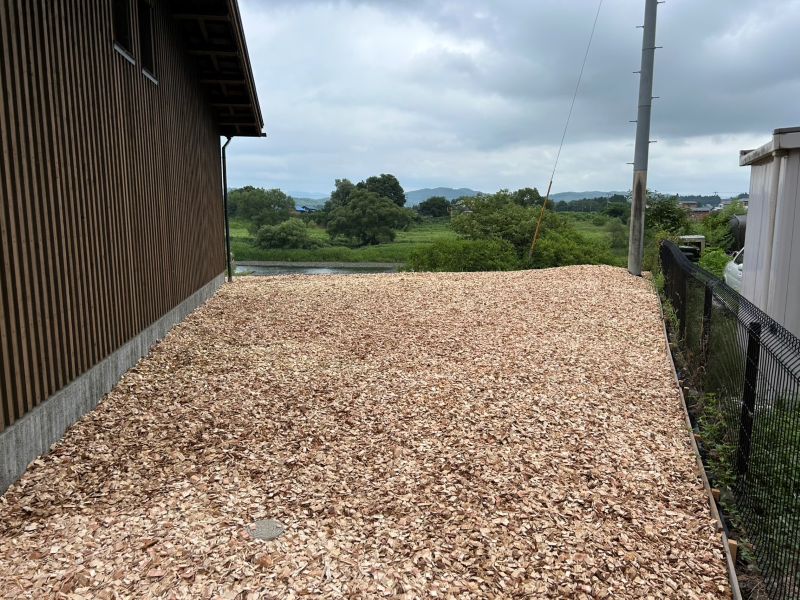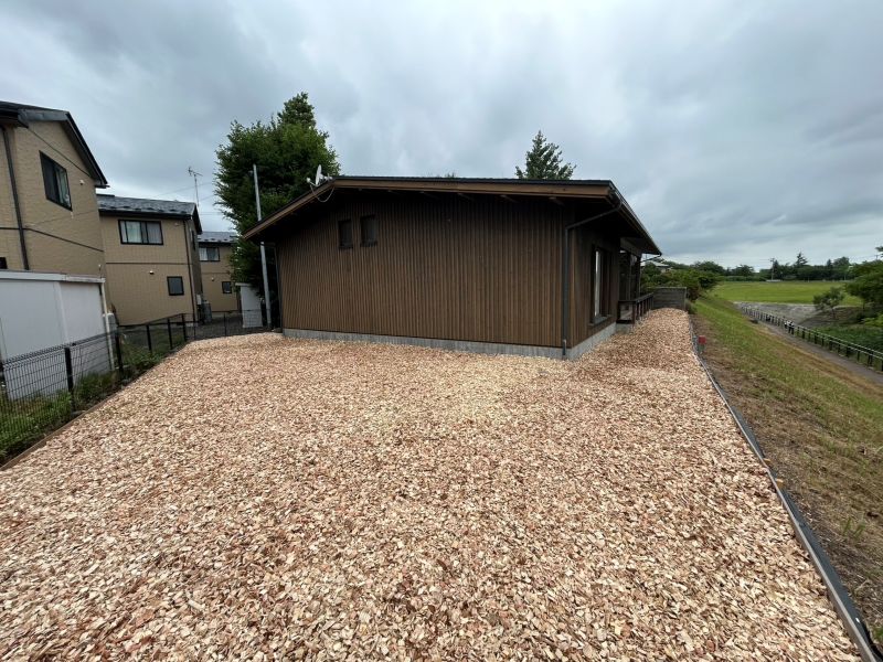 花巻市のイギリス海岸前の邸宅のお庭にウッドチップを敷き込むお仕事をご依頼いただきました。現地調査にお伺いすると、単純にウッドチップを敷き込むだけでは防草にならないので、一度整地と防草シートを敷き込んでからウッドチップを敷入れる工事になりました。場所はイギリス海岸の目の前で、とてもいい眺めのところでした。