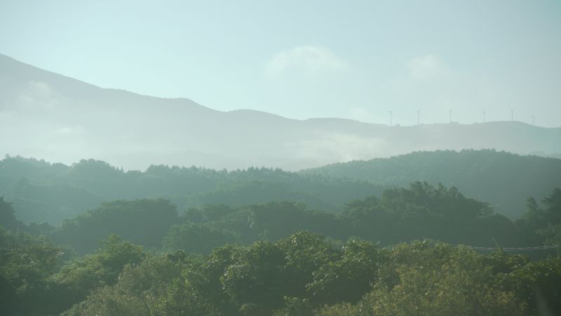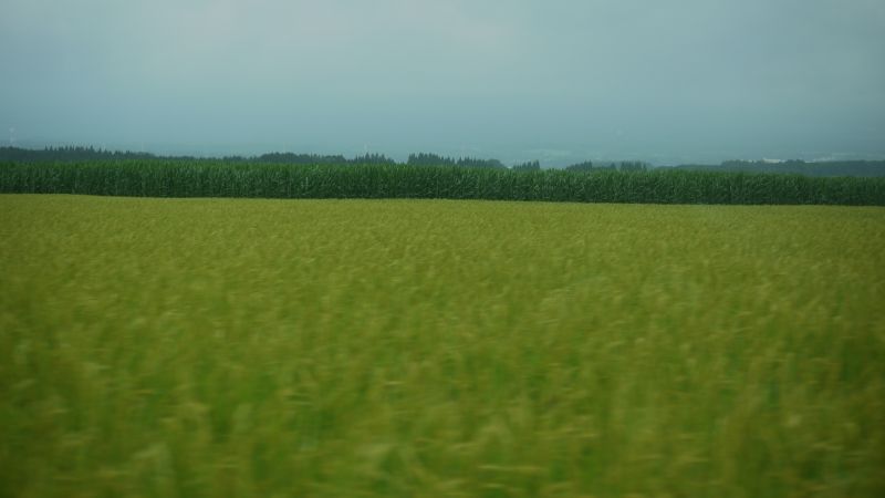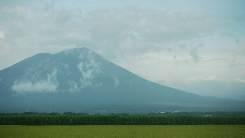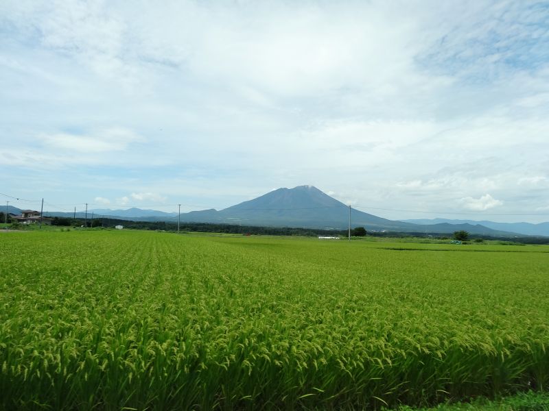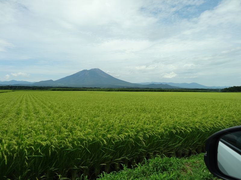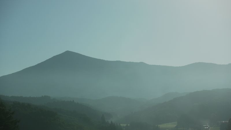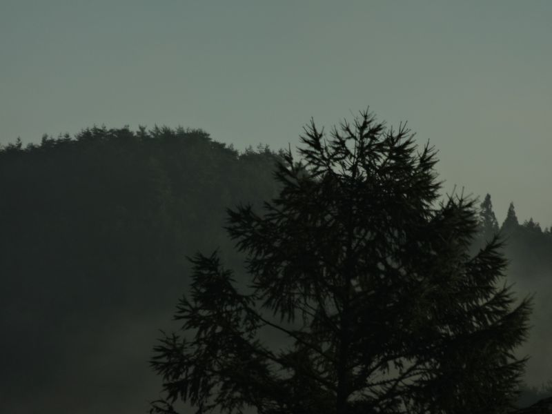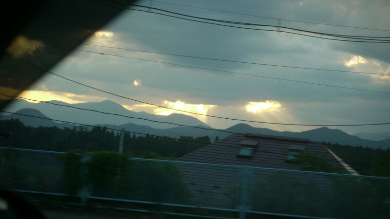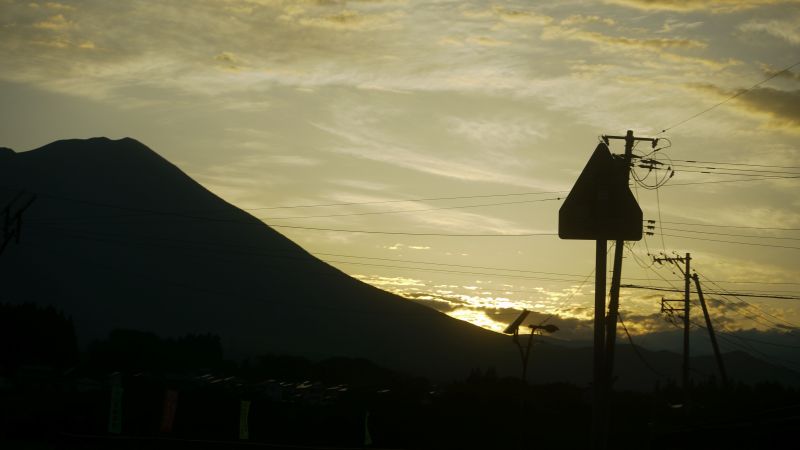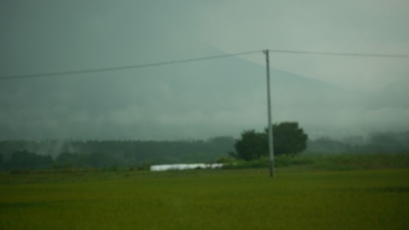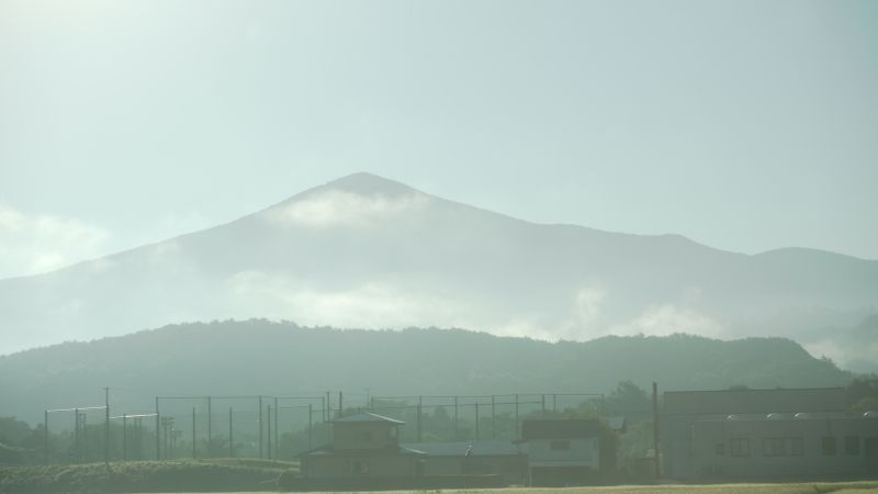 猛烈な暑さの日が続いた日の翌日温度が下がった朝を好摩に向かい走行すると、山々に靄が掛かり、山裾を靄が覆いそこに朝日が差し込んで幻想的な光景に出会いました。
