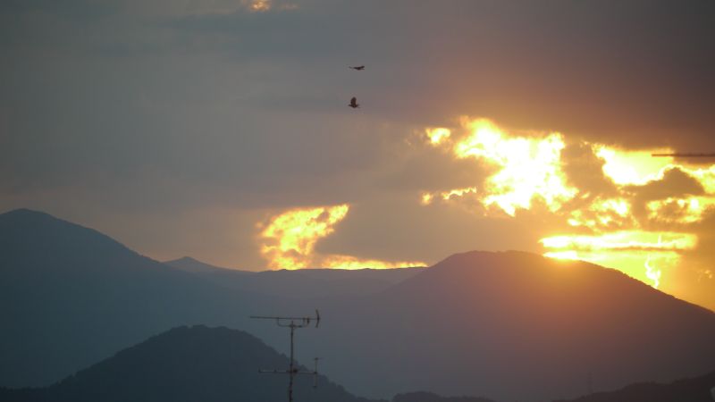 昨日は、盛岡市の最高気温記録更新したようですね。夕日も暑く溶鉱炉の様でもありました。その空を飛ぶ鳥も大変です。
