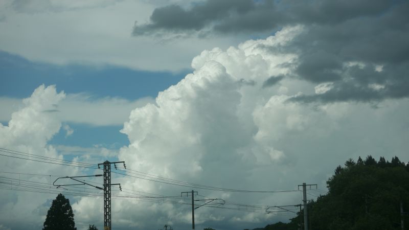夏と言えば積乱雲が目立ちます。その下の山々の緑も際立ちます。