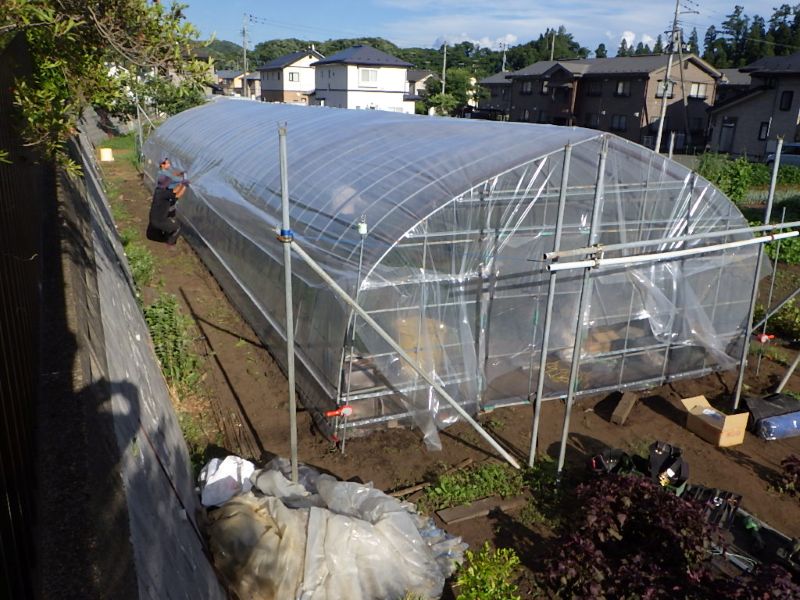 今回はビニールハウスのビニール掛け直し修理をご依頼賜りました。先代に残していただいたビニールハウスのメンテナンスを一人で行うのは困難とのご相談でしたので、さもありなんとお手伝いを買って出ましたが、案外難しくて勝手がわからず、専門業者さんに大まかお願いしながら一緒に作業した次第です。当社は工務店ですが、お困りの方の為にお役立ちする汗はかきたいと思います。