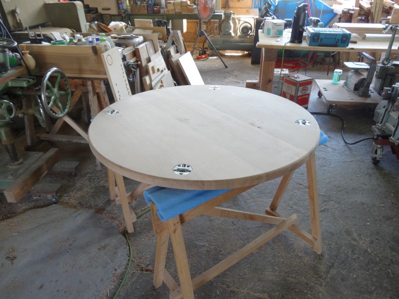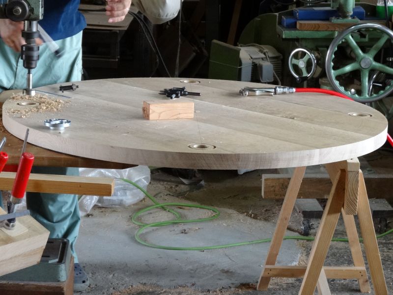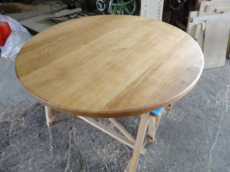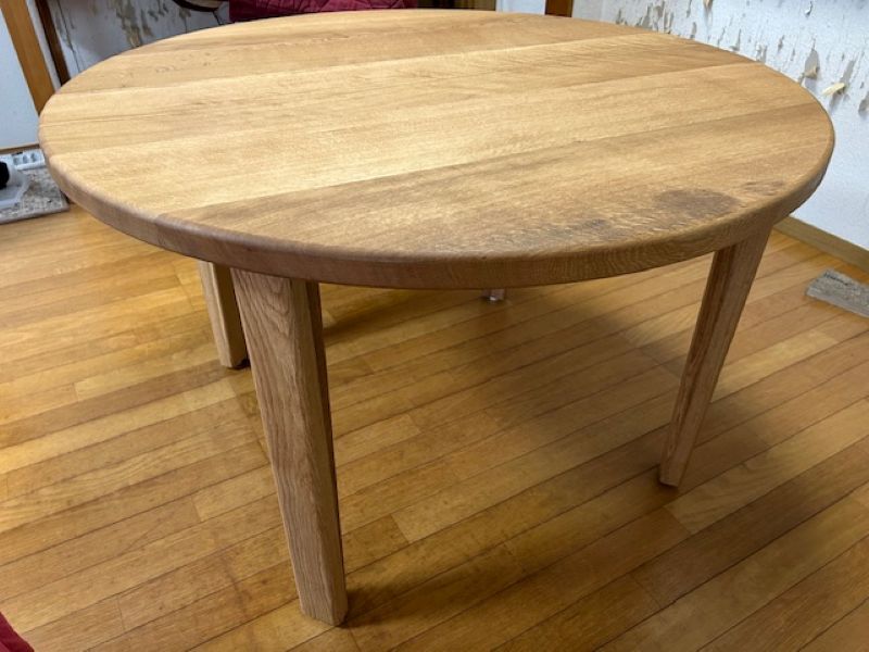 直径1100ミリの大きな丸テーブルのご注文を賜りました。天板は完成して、足ももうじき完成です。この様なオーダーメイドの本物の木のテーブルのご注文も羽化賜っております。今回は水楢無垢材のテーブルでした。因みにお届け納品で、税込み15万です。