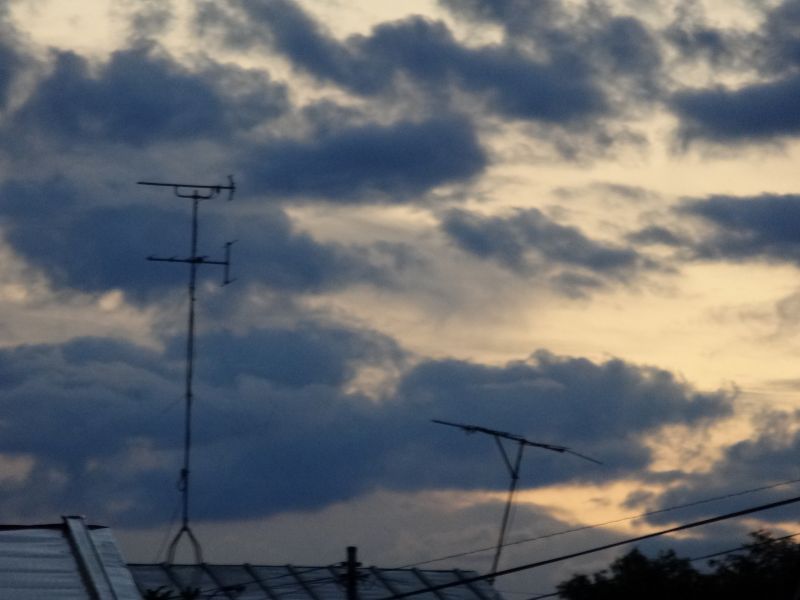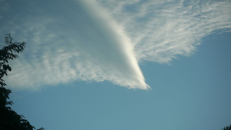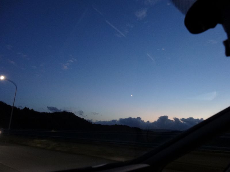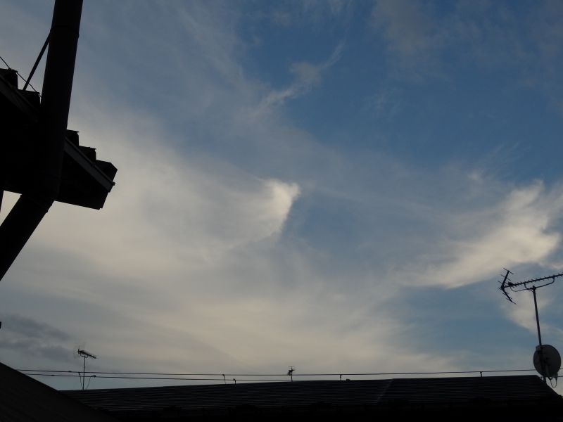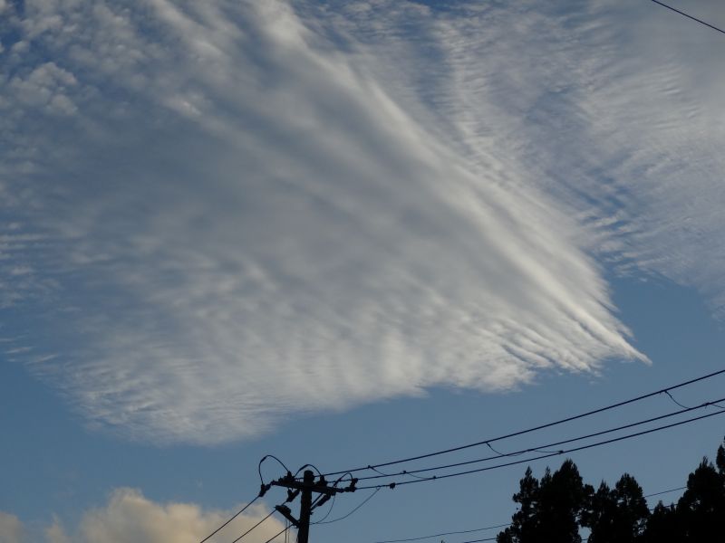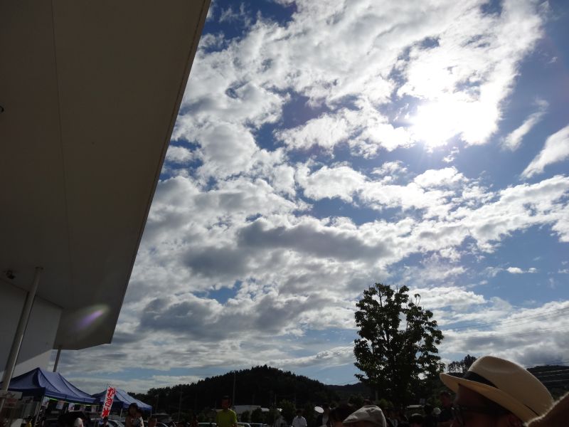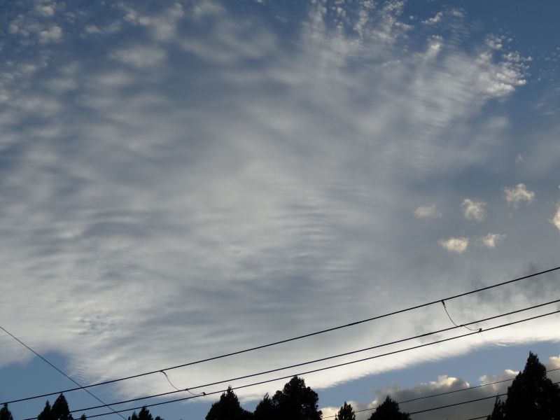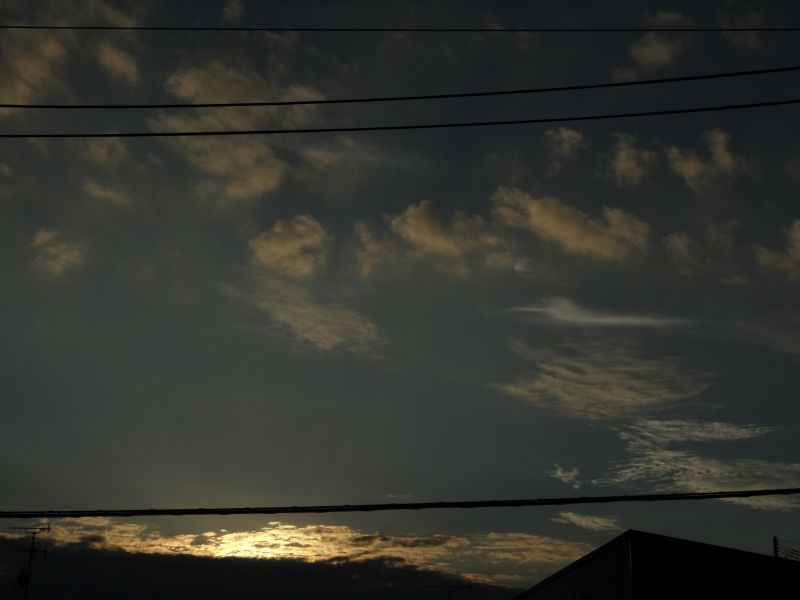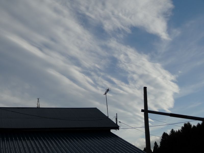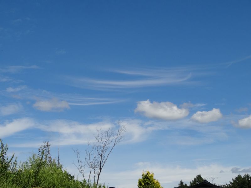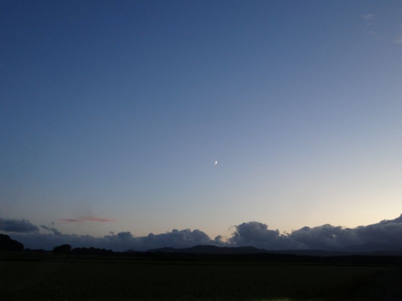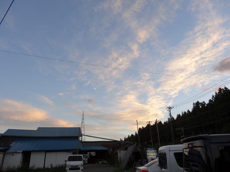 空を見上げると、雲が夏から秋へと移り変わる気配を感じさせてくれています。そして、時にはまるで生き物のような雲の姿も見かけます。月は三日月です。