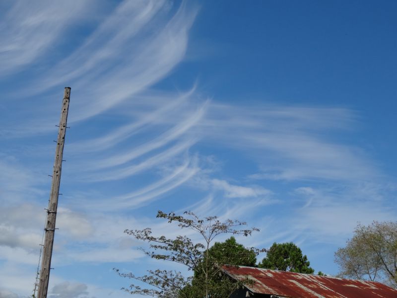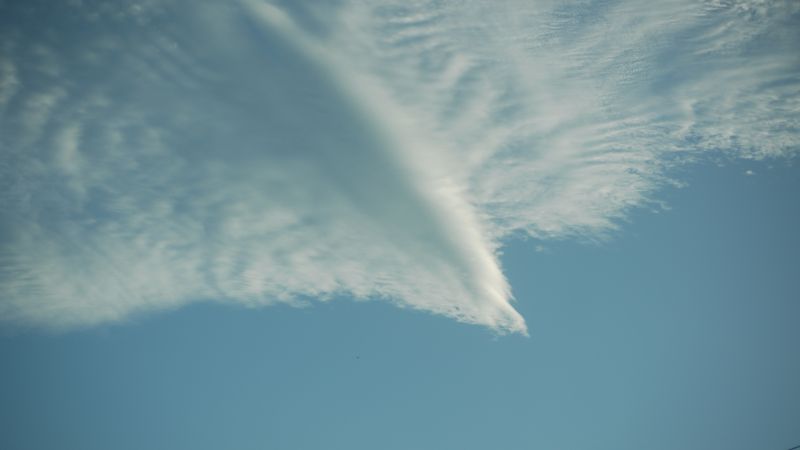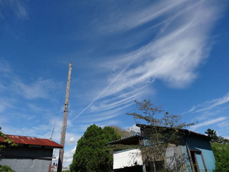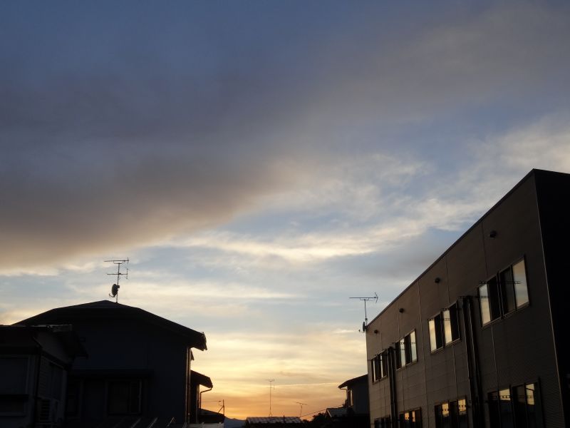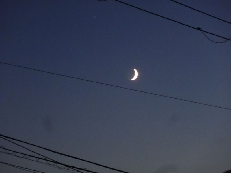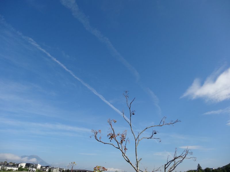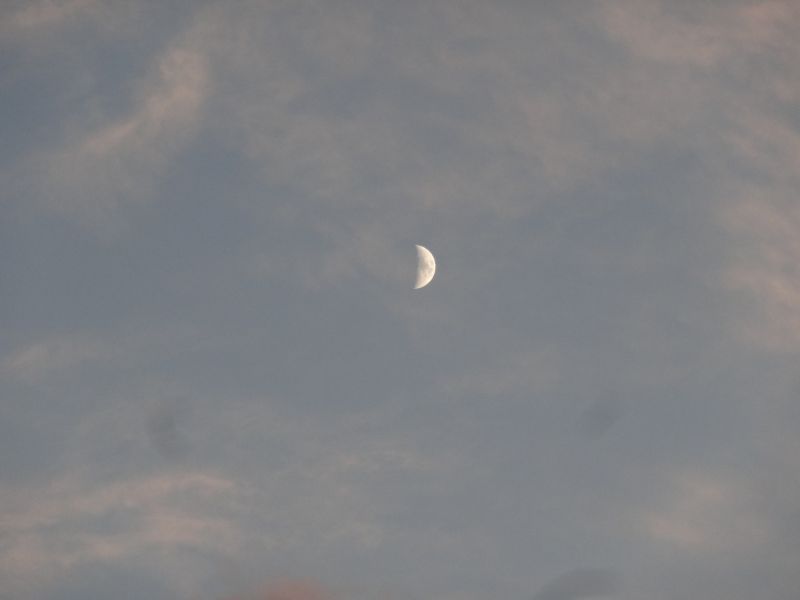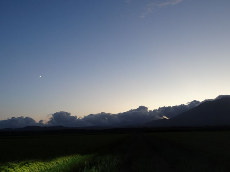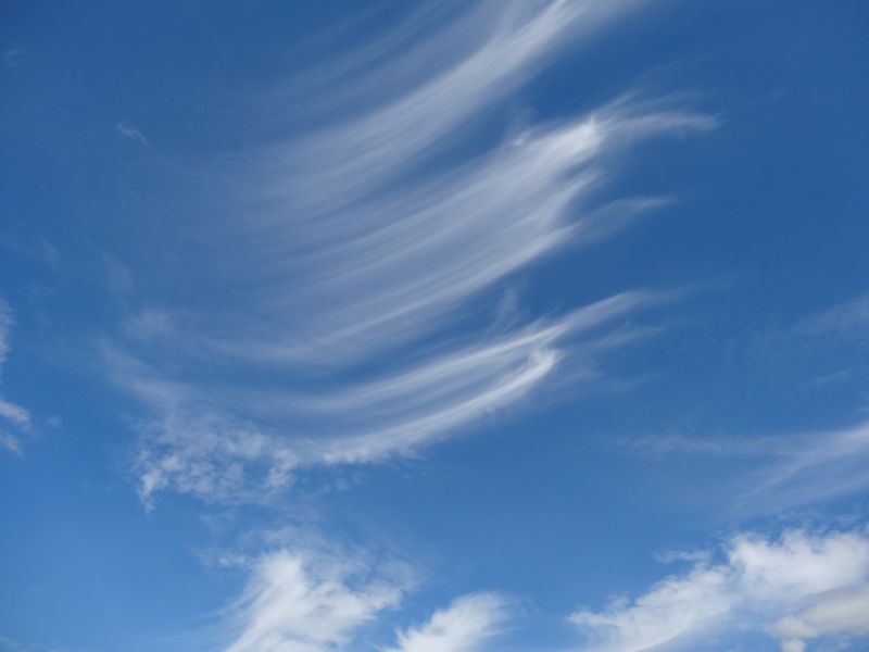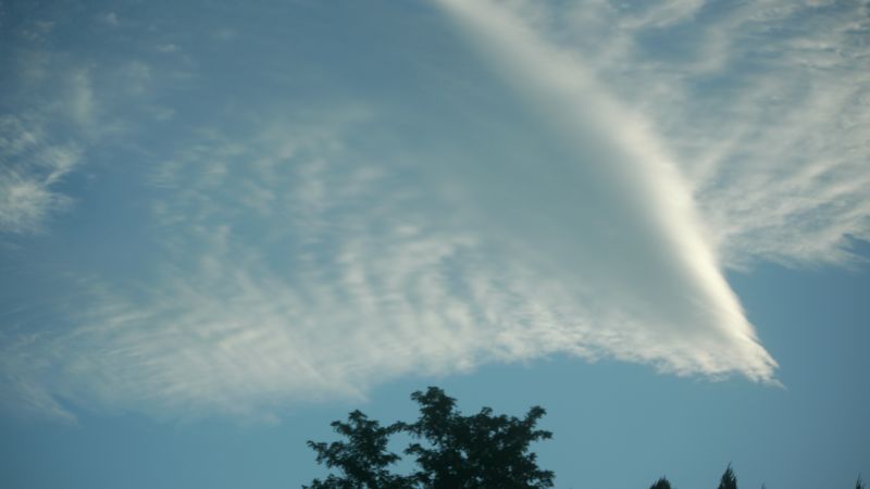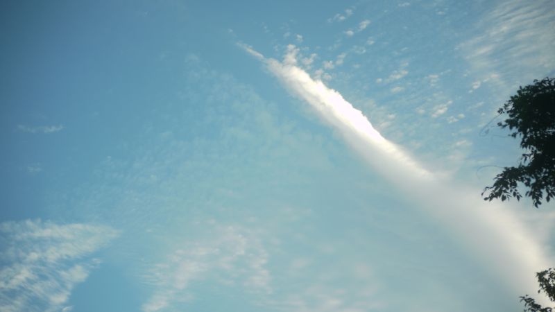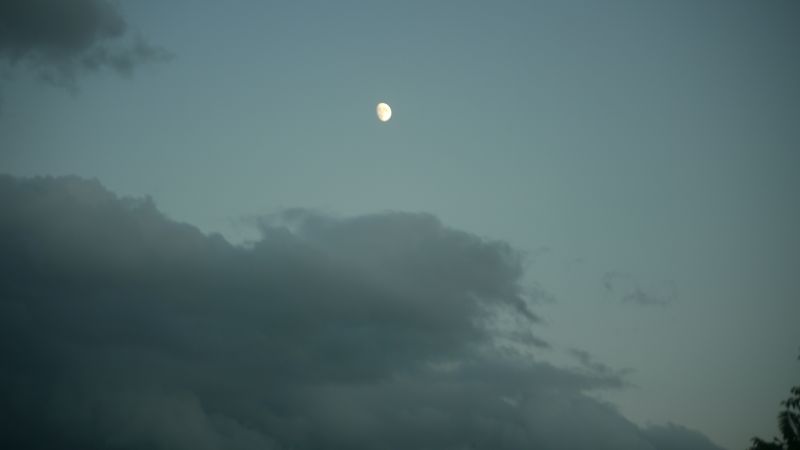 空を見上げると、雲が夏から秋へと移り変わる気配を感じさせてくれています。そして、時にはまるで生き物のような雲の姿も見かけます。月は三日月です。
