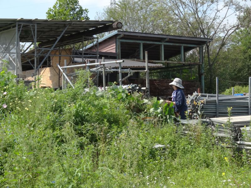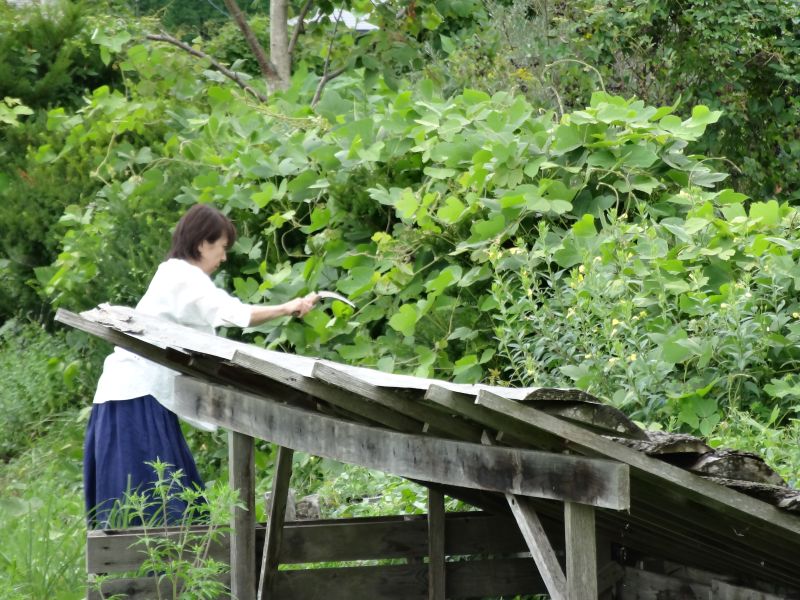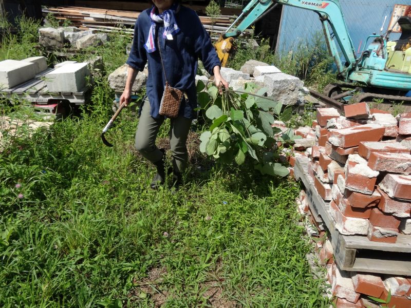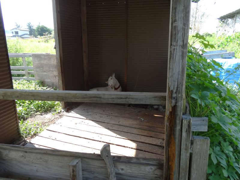 山羊のゆきちゃんをそとに出してあげようとしても暑いのがわかるらしく、ぜったいに出ようとしません。仕方ないので、そのまま小屋に置いて、草刈りをしてあげているのでした。幾ら暑くても蜜蜂は元気に蜜集めしています。