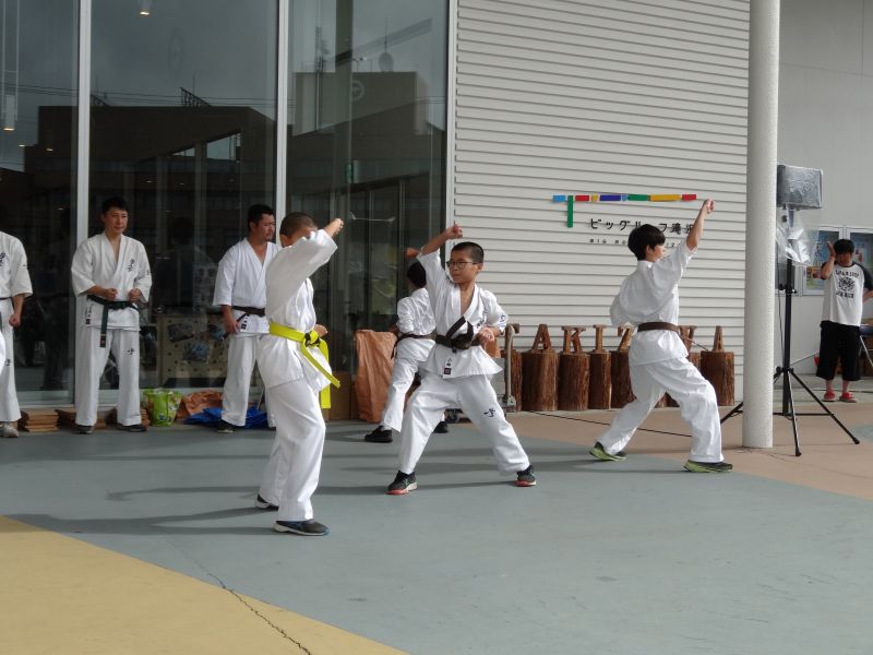 11日滝沢のビッグルーフでほぼ毎年開催されている極真空手の演武と盛岡大学さんさ演舞を見てきました。雨模様が一転しての強烈な日差しでした。