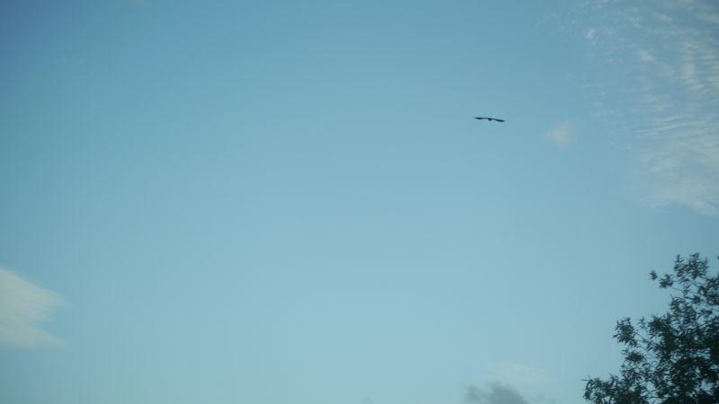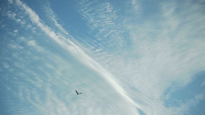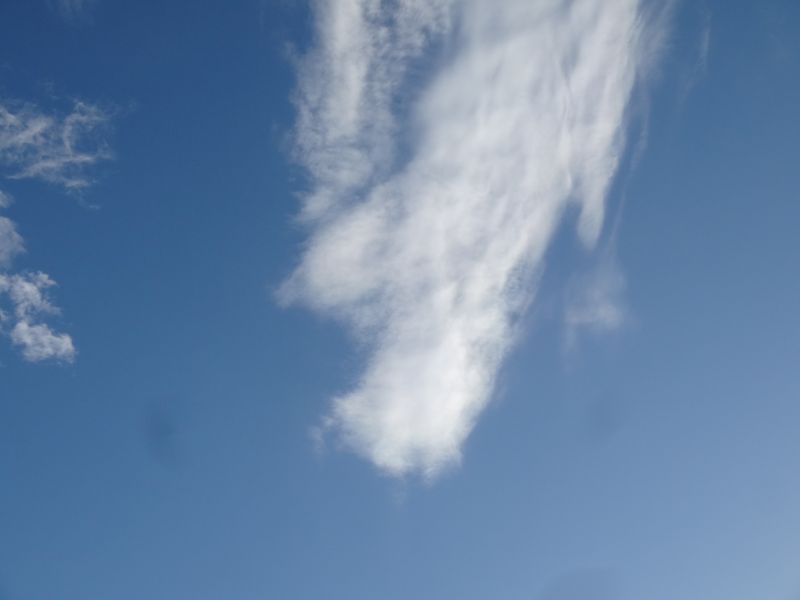 空駆ける鳥とその上の雲が鳥のその姿にも似て見えました。
