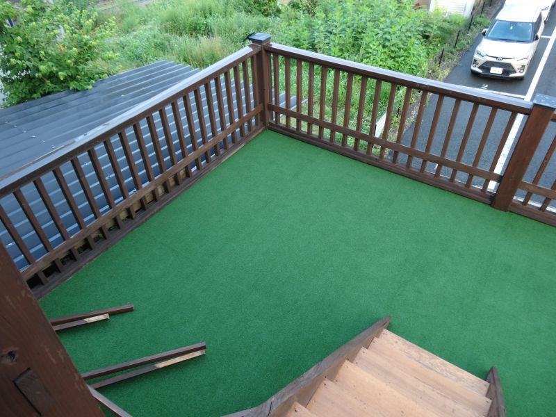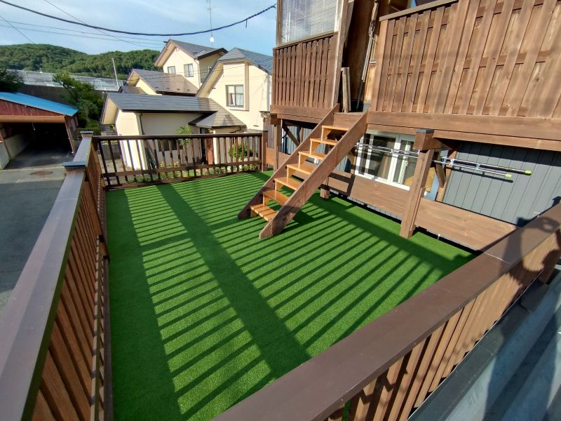 人工芝のウッドデッキ