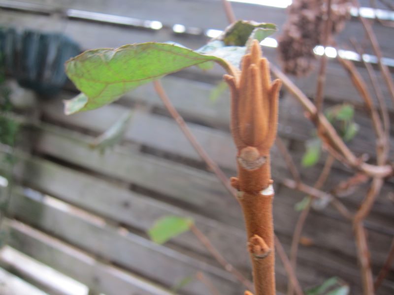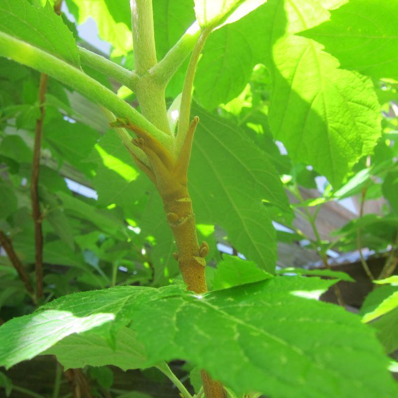 庭の柏葉紫陽花の冬芽とそれが開いた春を人生格言と共に・・・