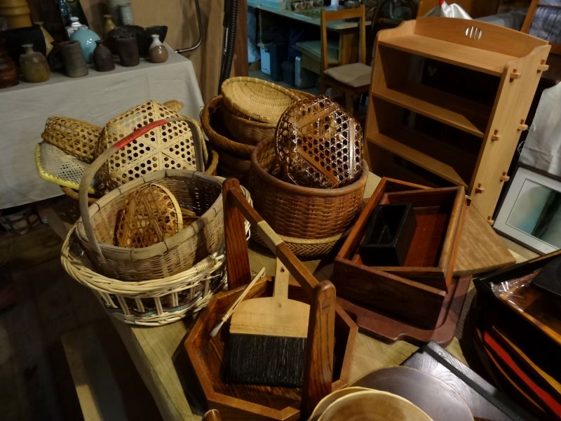 古いものいろいろ市も昨日で終了、無事一週間開催させていただきまして、大勢の皆様にたくさんご購入していただく事が出来ました。文字通り人それぞれ色々でした。お買い上げいただきました皆様に心より感謝御礼申し上げます。寂しくなった店内でも、今週から籠編み教室が再開されるので、即座に片付けねばなりません。薪の販売は引き続き行いますし、古い家具の持ち込み修理も行いますので、引き続き何卒よろしくお願い申し上げます。