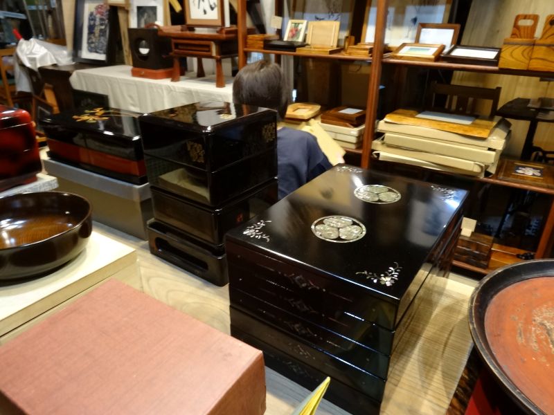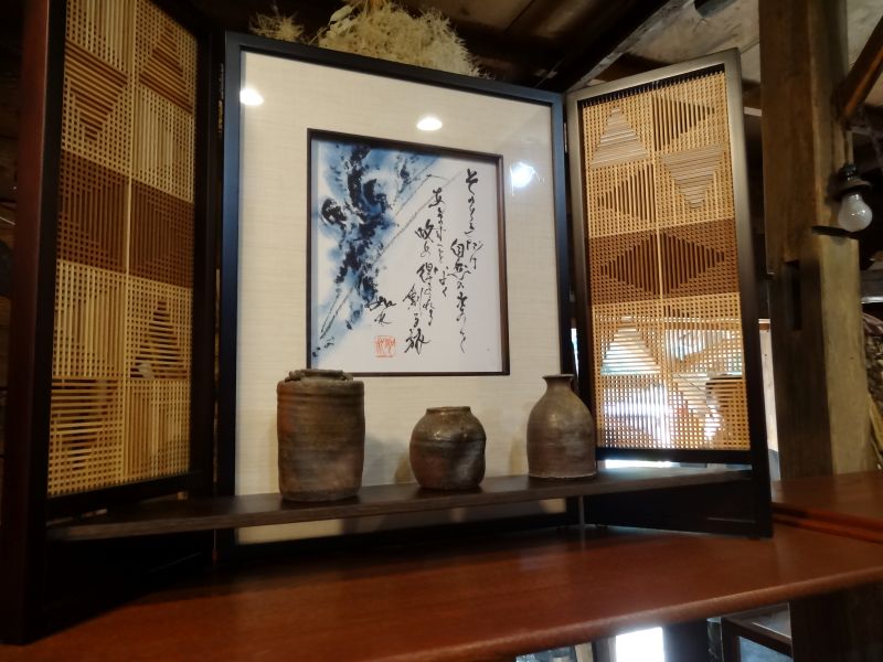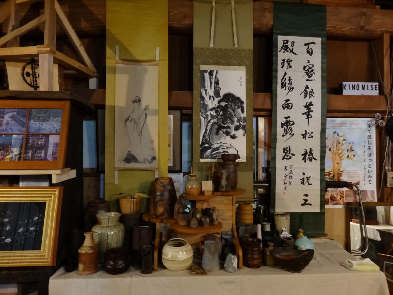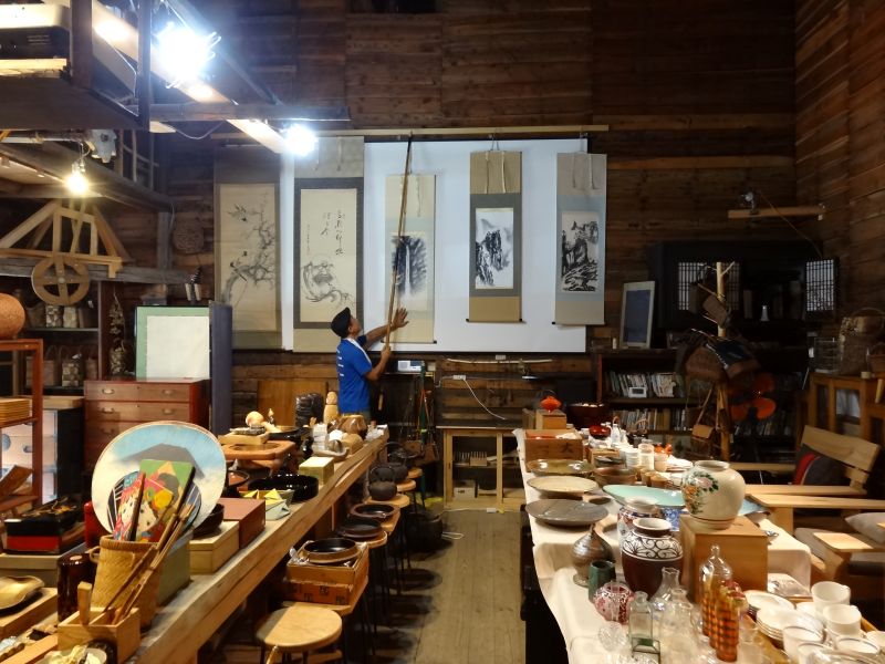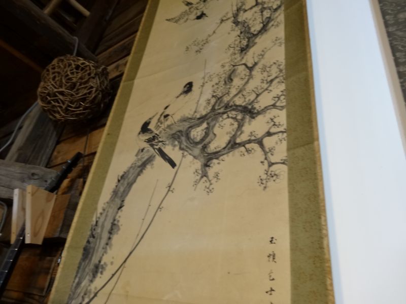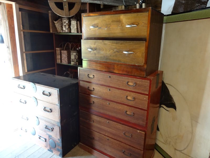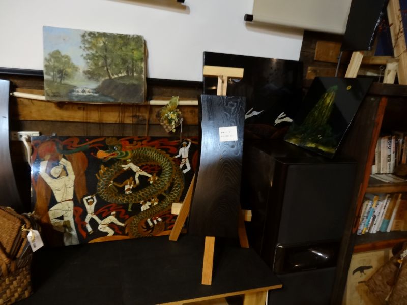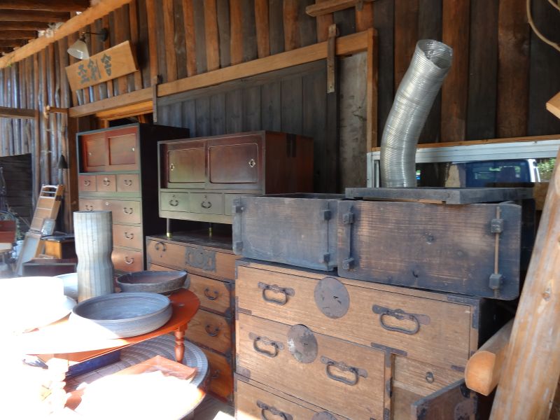 中に入りきらないタンス類を外に並べたり、飾り棚が増えたので、ディスプレイの変更をしたり、値札付けも進んできました。100円500円コーナーも出来てきました。安政五年と書かれた掛け軸があったりしてます。