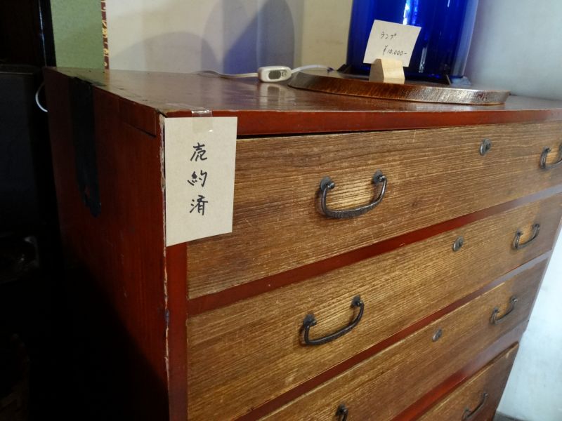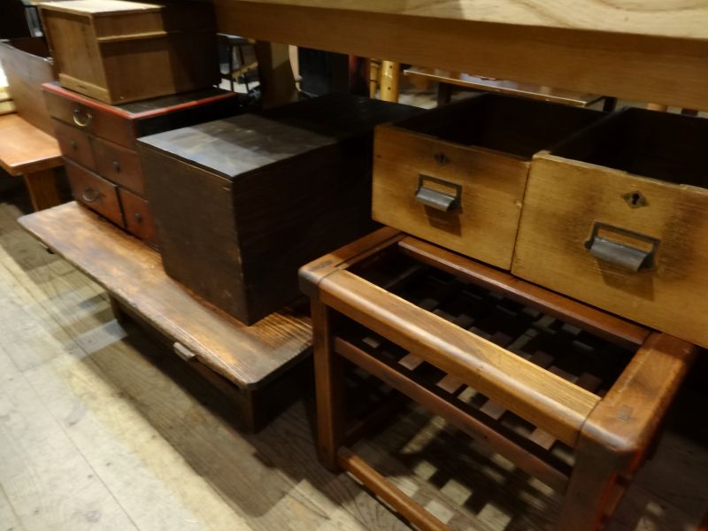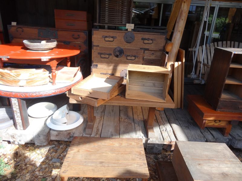 古いものいろいろ市も五日目になりまして品薄感もありますが、古い椅子を直して店頭に置いたり、素敵な鏡なども追加して、外には本格的に古い物が置かれました。嬉しいのは、桐タンスが売れたことですね。¥5,000でしたので超お買い得だと思います。また、倉庫から古いミシン台を見つけて現在手直し中ですが、今回にはまにあわないかもしれません・・・