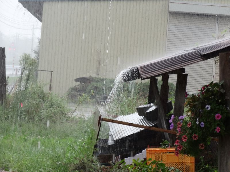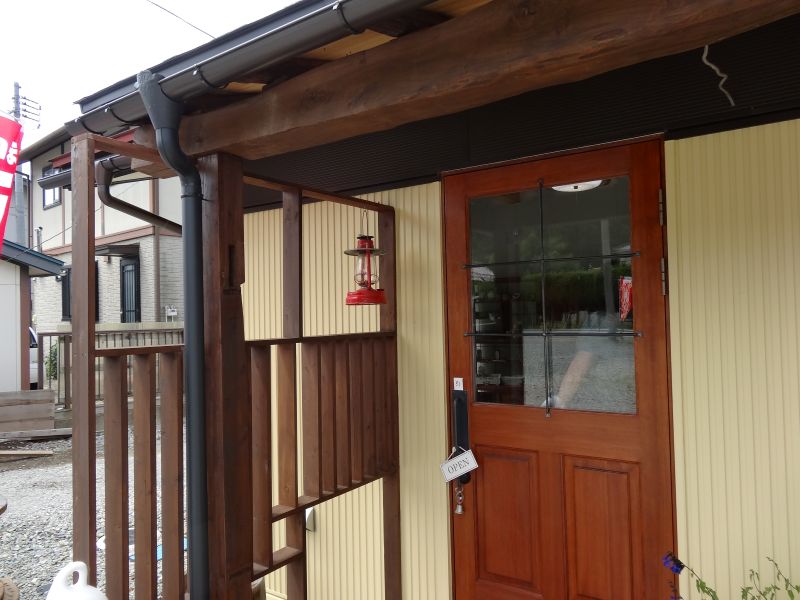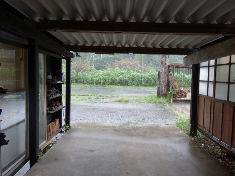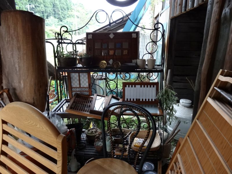 大雨でした。そんな天候の下木の店では古いもの色々市の準備が進められていました。