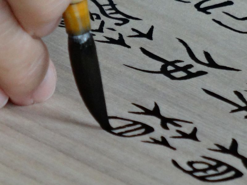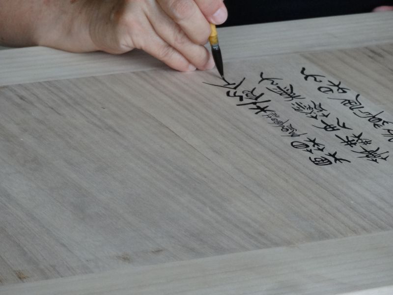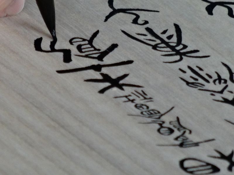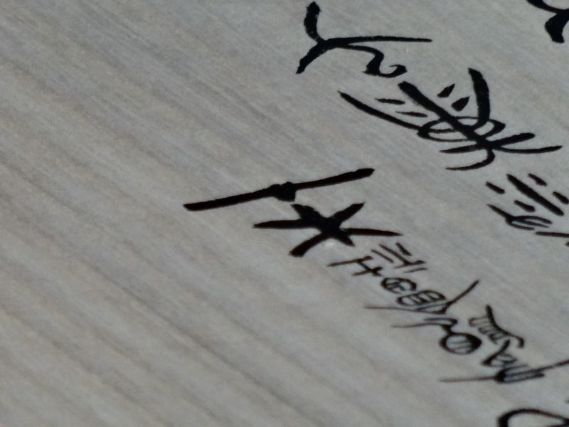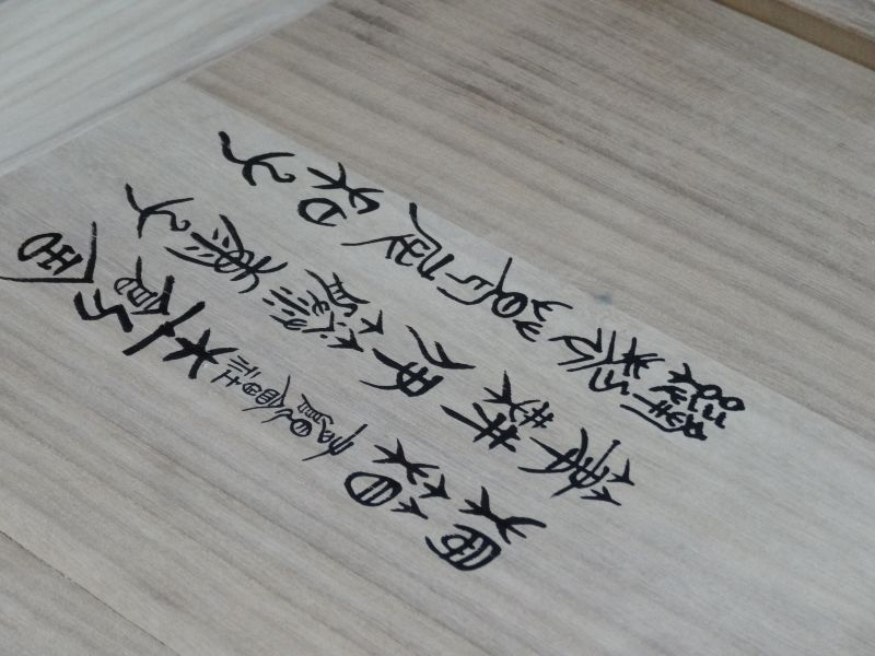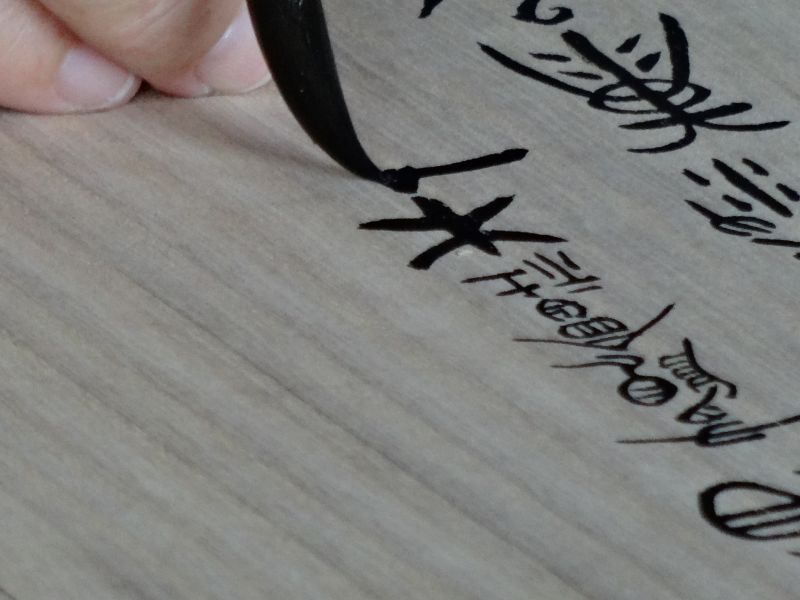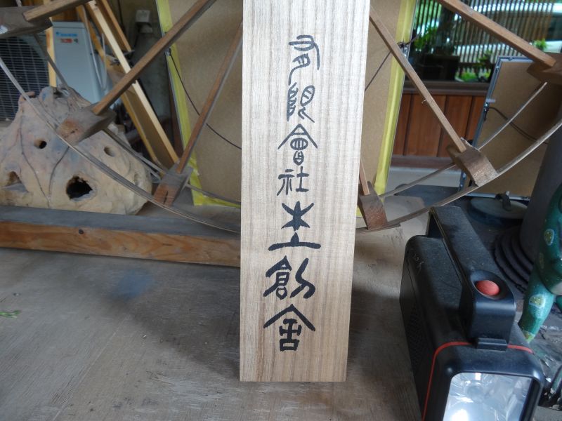 川留稲荷神社様に幟箱の桐箱をご法の差せていただきましたが、箱に揮毫されるとのことで、立ち会わせていただきました。書道家の伊藤康子様が、ぶっつけ本番で書き込んでいましたが、書入れの前に、東都者提供の桐板の端材に練習した。「有限会社杢創舎」と表札様にいただいてまいりました。