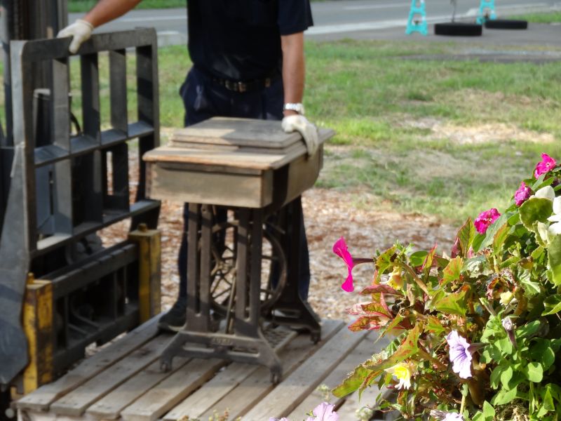 大雨の中古いもの色々市準備