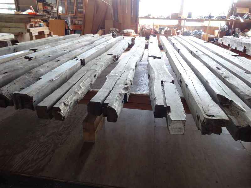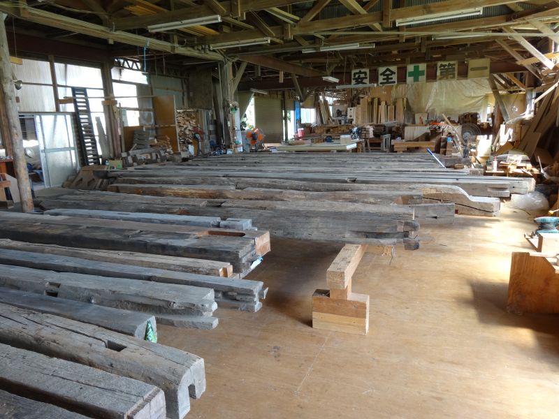 秋空の下、場内の古材を出し揃えてみました。