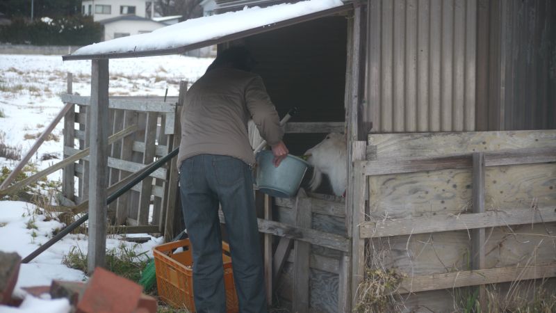 長期の休み中ですが、山羊のお世話には来なければなりません。人の気配を感じると、小屋から顔を出して、「おめ~ぇおそいめ~ぇ」と聞こえる声で怒っていますが、それでも「ゆきちゃーん」と声を掛けると、ニコット目が笑います。そして、餌を手にした姿を見ると、更に嬉しそうに口元が笑っています。目元も大きく笑い顔になります。そして、待ちきれず餌に飛びつくのでした。