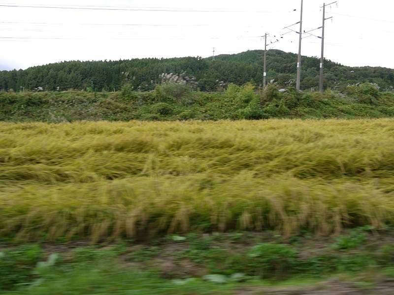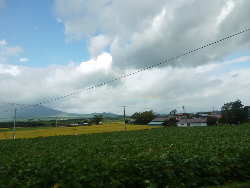 心配した被害もなく、無事朝を迎えることが出来ました。しかし、各地に傷跡を残した台風24号でしたが、好摩近くの荒川の水位はいつもより確かに高く、濁って勢いのある濁流と化し、稲は無残に倒れています。どうしても抗えない自然の猛威を感じる2018年でありますが、これ以上の災害が来ませんようにと祈る次第です。西の空には虹が架かっていました。