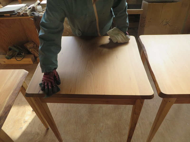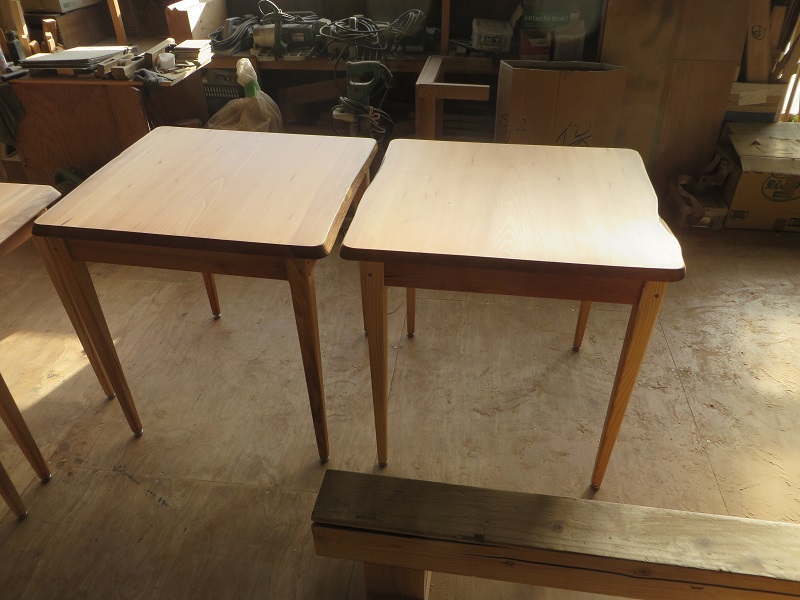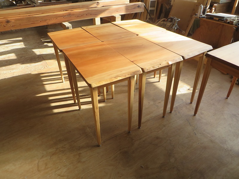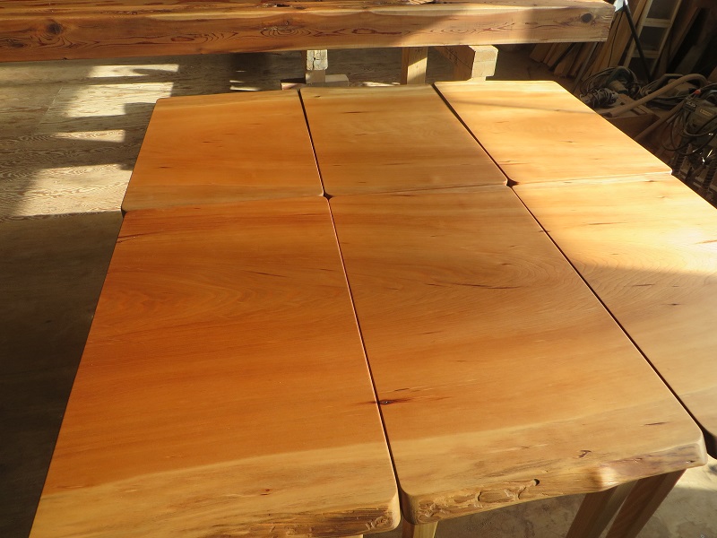 クロステラス様にご注文いただいた桂板のテーブル完成です。