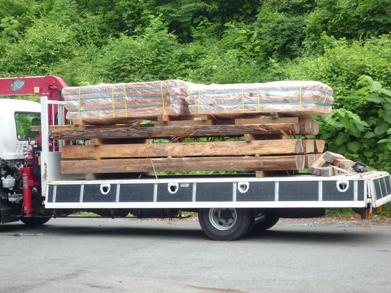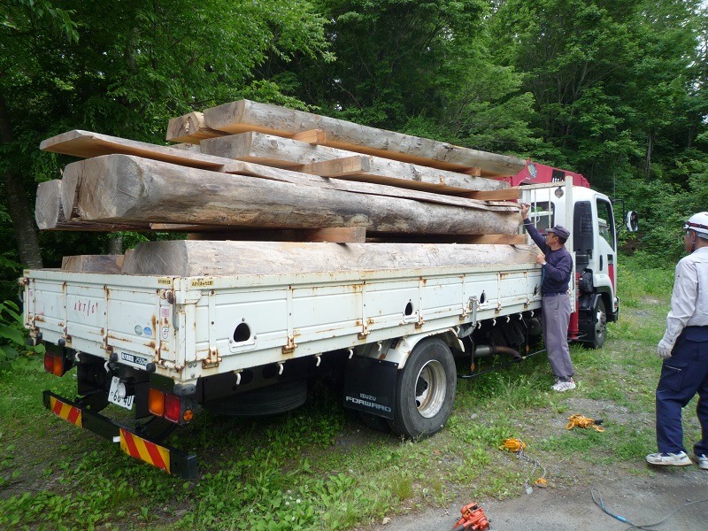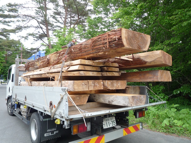 30日月曜日は、木材の一括購入した材を引き取り搬送しました。一日で搬送予定でしたが、甘くなく二日間かかってしまいました。もっともその位の量であったと云う事です。