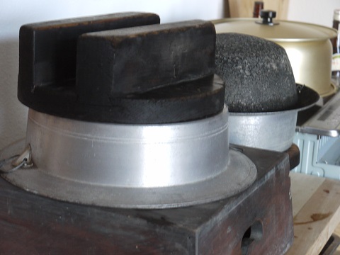 なんと珍しきお釜が4個もあります。これでご飯を竈の薪で炊くとおこげ付きご飯になると思います。おいしそうなイメージが広がるものですね!鹿肉カレーのお振舞いイベントも企画中の好摩事務所脇板倉でした♪