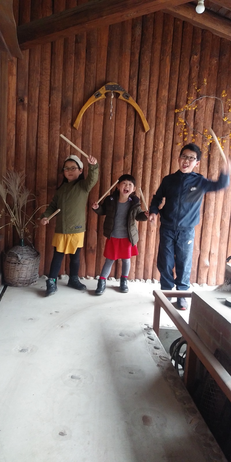 昨日は、先日お住まいが完成したお施主様がお子さんと木工体験に来てくださいました。家族でさんさ踊りに参加されているので、太鼓のバチを家の柱と同じ材料で造りたいとのご依頼でした。そこで、大黒柱の栗と玄関ポーチの外柱の槐に机カウンターの桜の端材をご家族皆さんで鉋で削って丸棒を造り上げました。その様子を写真でご覧ください。