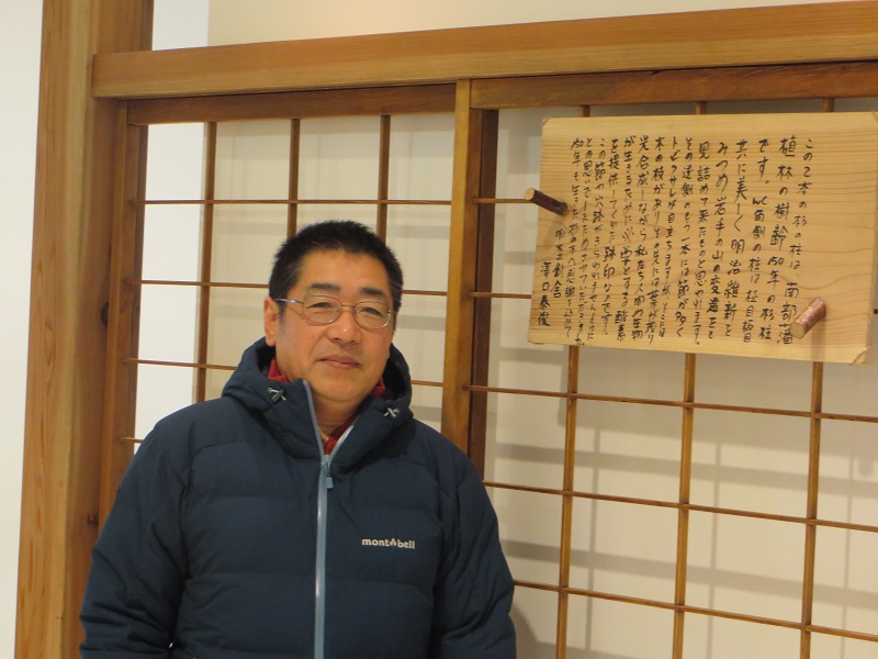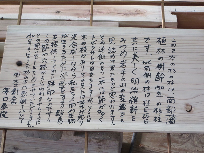先日紹介させていただいた150年の杉柱を盛岡市内のクロステラス様のトイレ前の壁に取り付ける工事をさせていただきました。