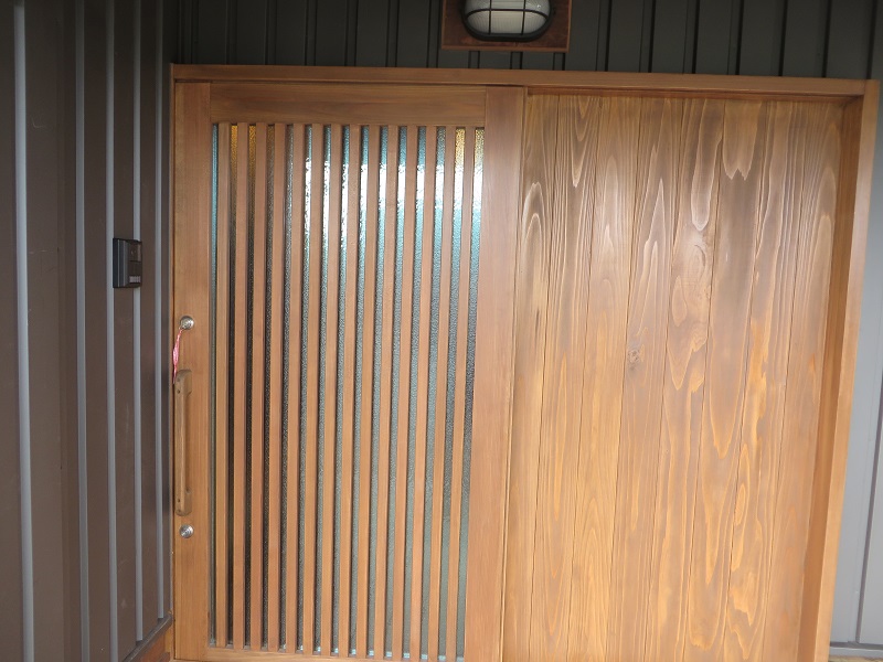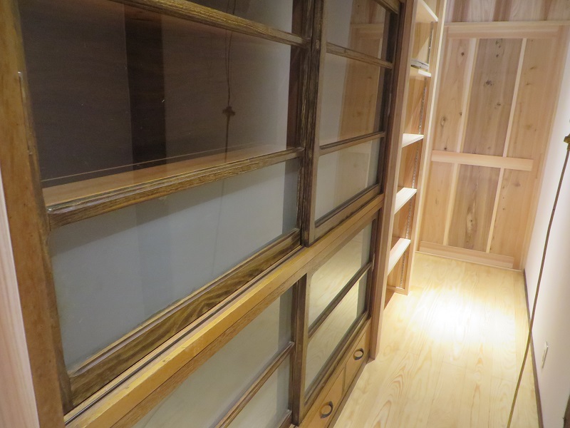 台所後ろの収納部は、元々の収納棚を手直し再生させて頂いたものです。