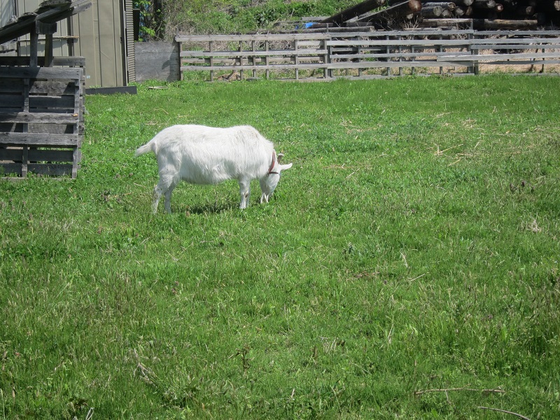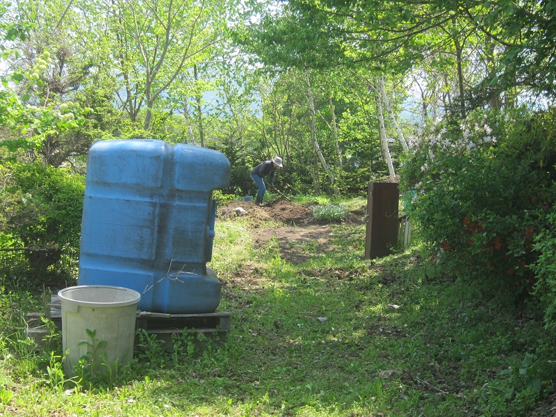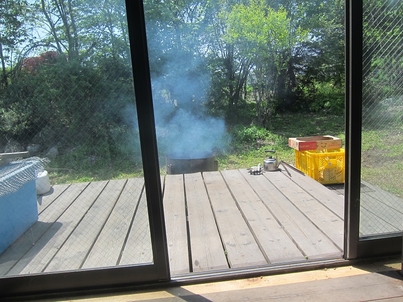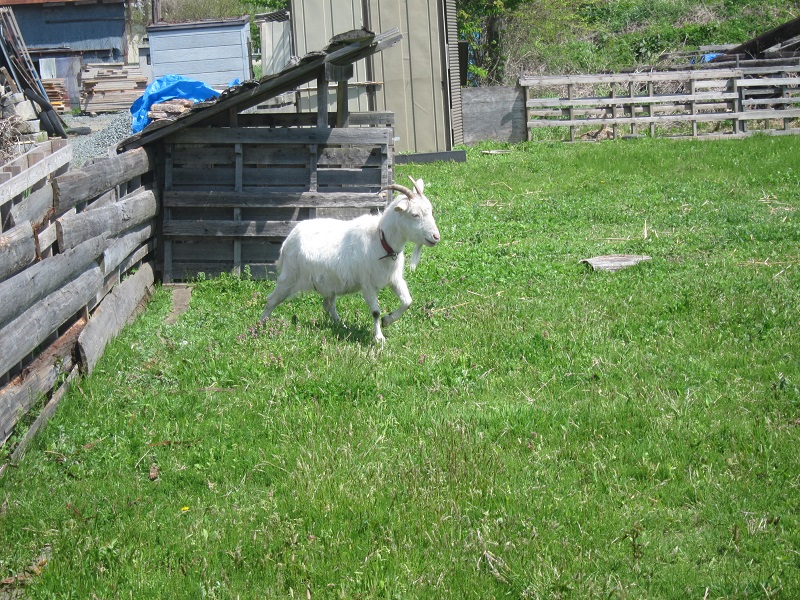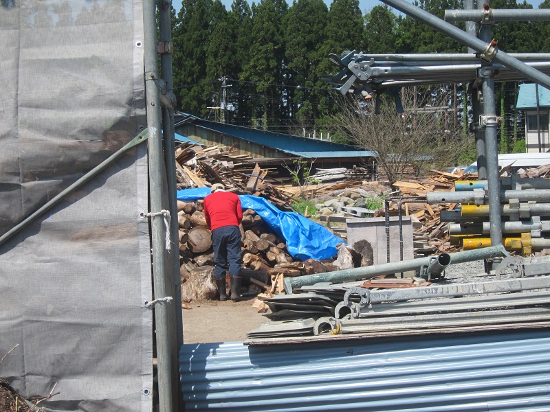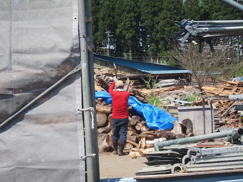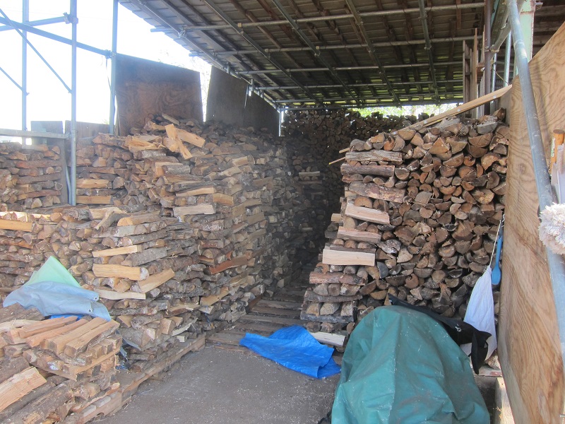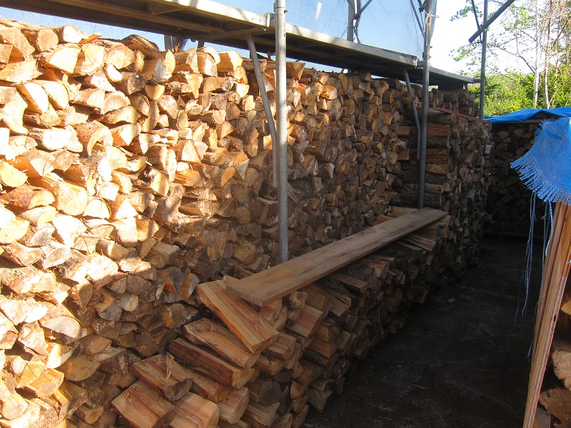 毎年連休になると、薪割り人が来られます。この暑さの下でも頑張っていらっしゃいました。我々は畑仕事しながら、火を起こしてお湯を沸かし、コーヒーを飲んで薪割り人との会話をささやかな時間を楽しませて頂きました。山小屋の居心地がとても良くて良い連休を過ごしております。山羊も草を食んで楽しそうです。山羊より下の写真は、当社の薪在庫です。今年も販売いたします。楢やサクラ材の雑木は1㎥¥22,000で古い薪の雑材はその半額予定です。宜しければ6/2のマルシェの際にでもご確認いただければ幸いです。