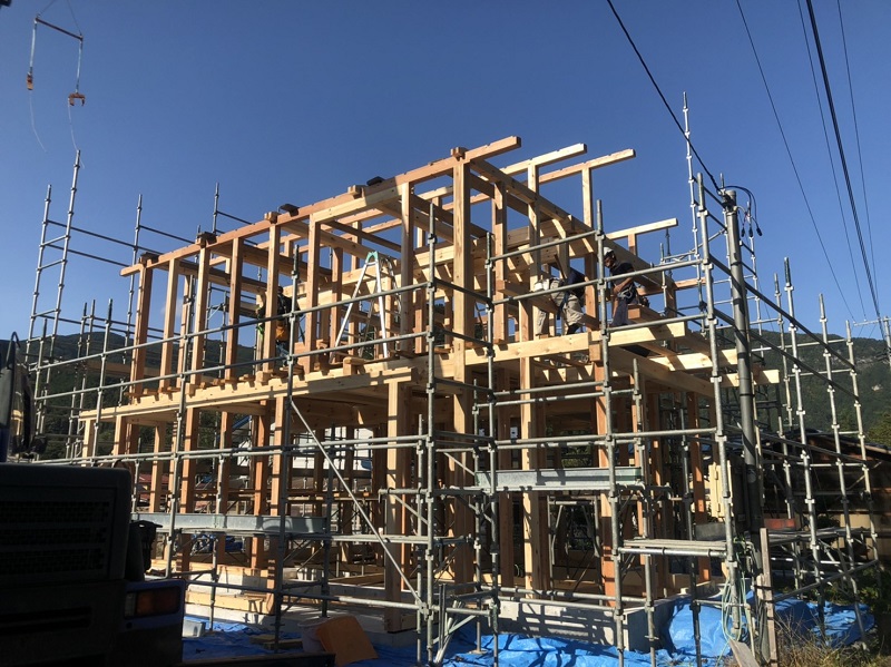 岩泉町の新築工事現場は、昨日無事上棟しました。